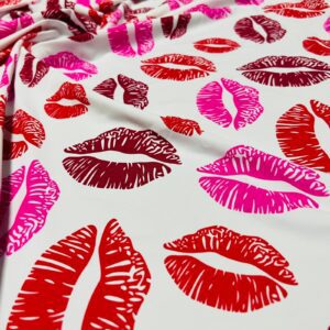 Painted Lips Print Nylon Lycra Spandex Fabric 4 Way Strech By Yard for Swimwear Dancewear Sportwear (279-9)