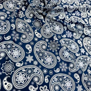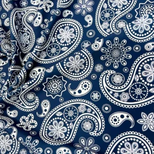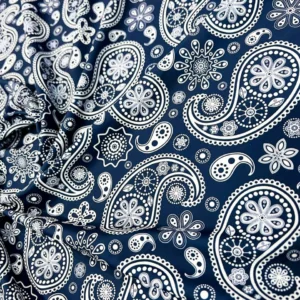 Paisley Navy Blue Background Print Nylon Spandex Fabric 4 Way Stretch By Yard for swimwear dancewear gymwear sportwear dress skirt (239-13)