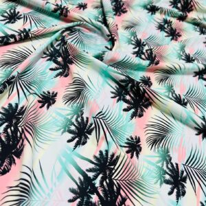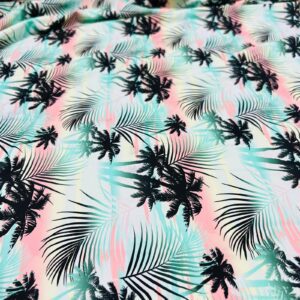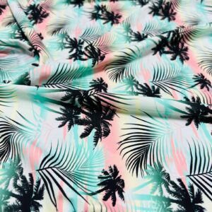 Palm Trees Miami Beach Print Nylon Lycra Spandex Fabric 4 Way Strech by Yard for swimwear dancewear dress gymwear (242-7)