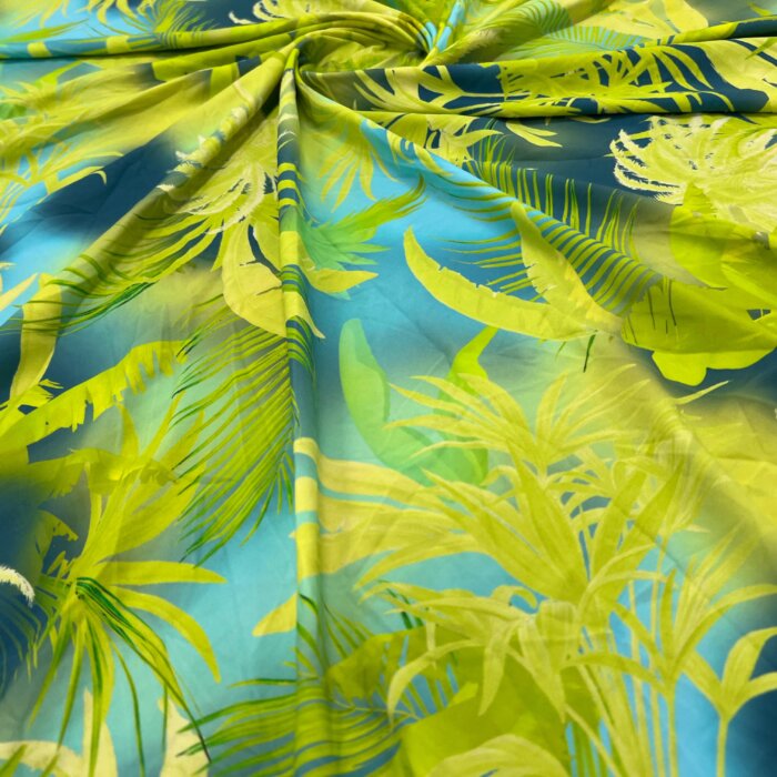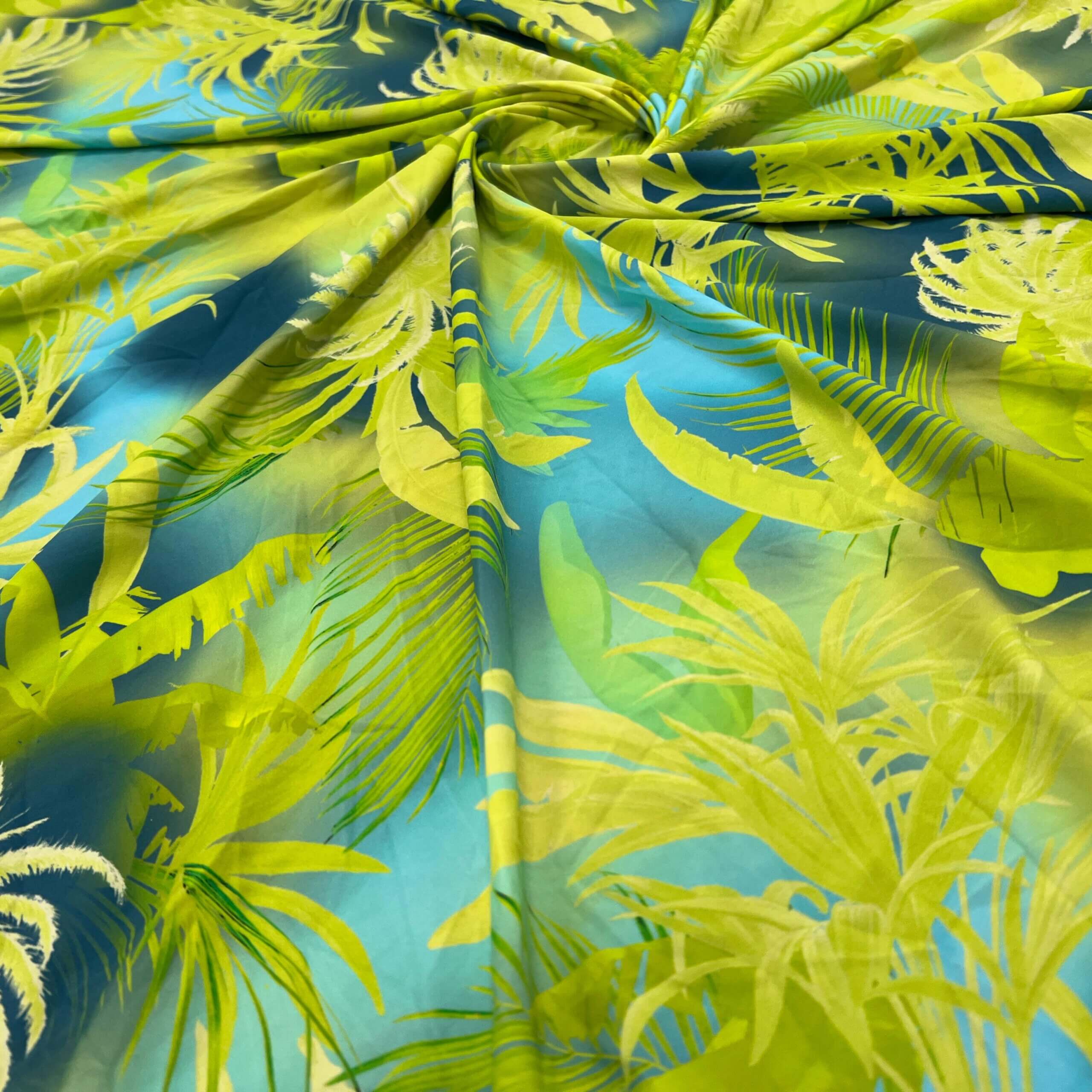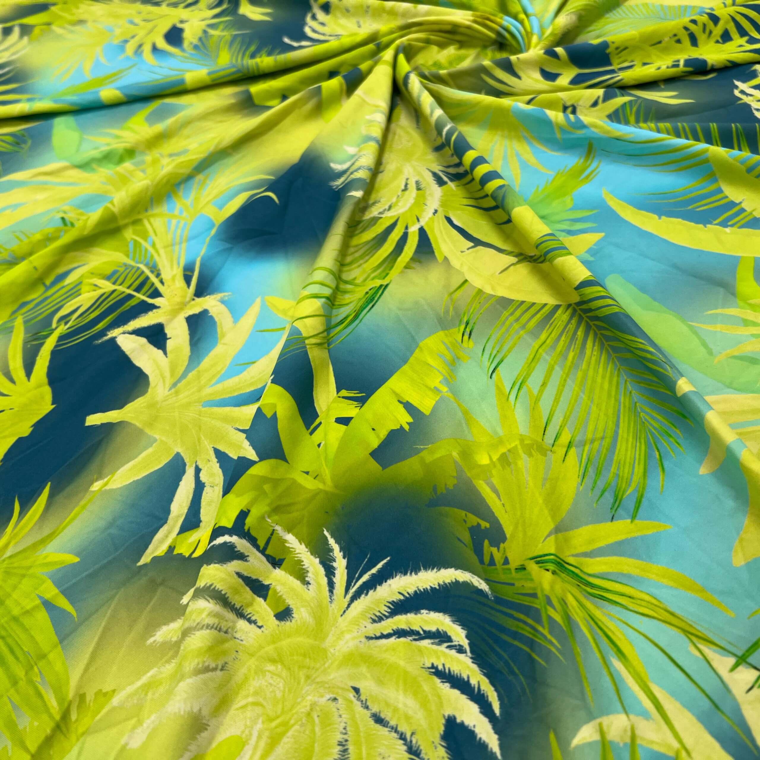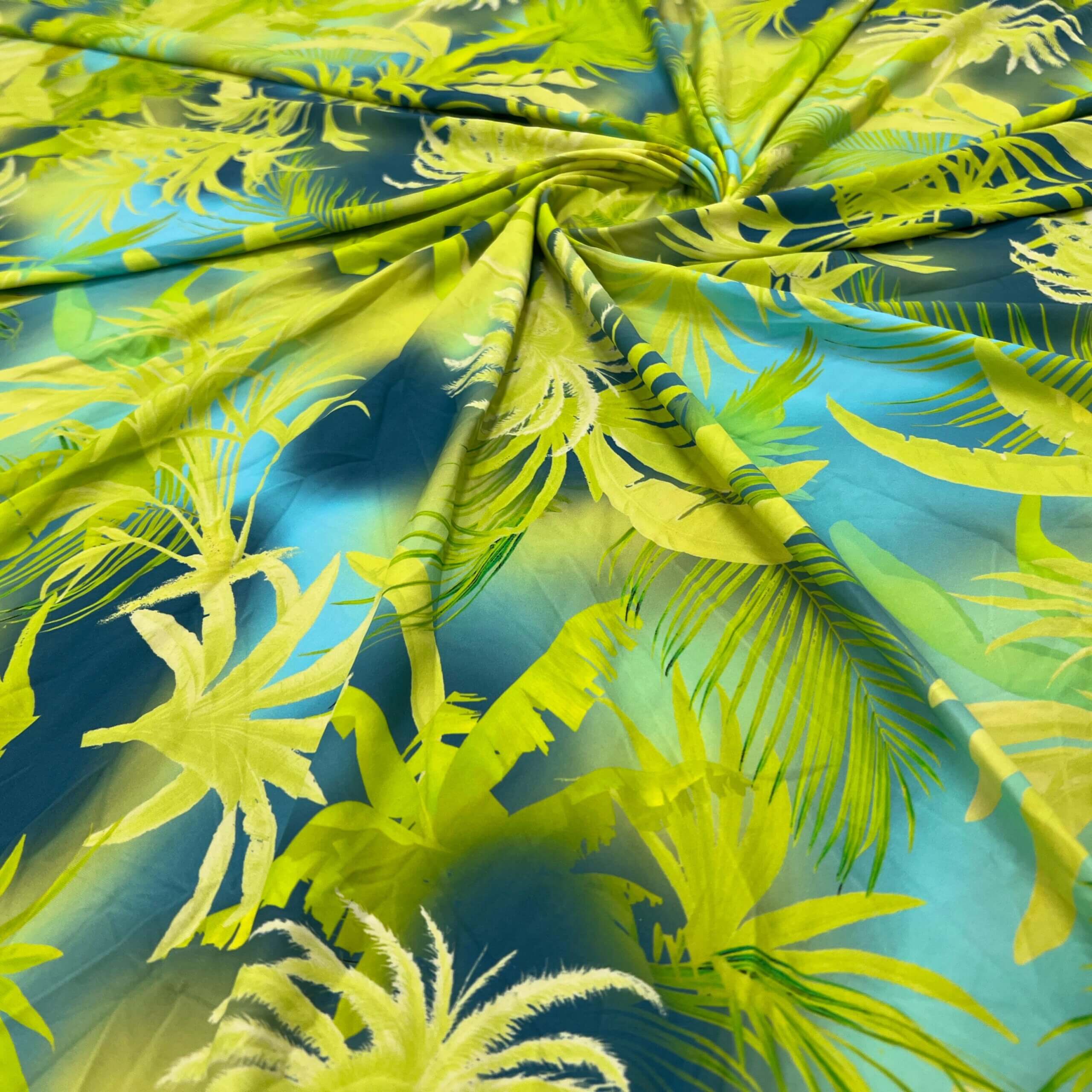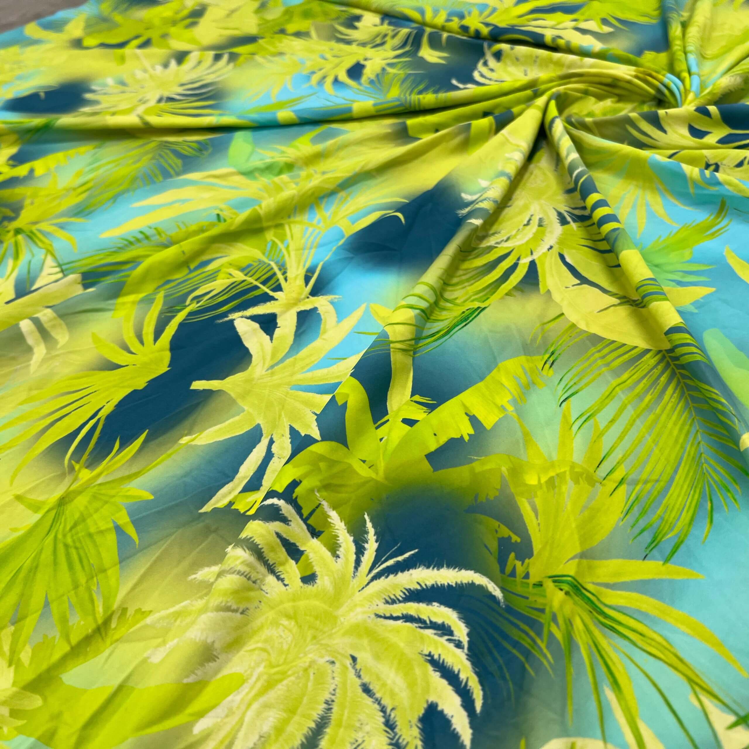 Palm trees Yellow print Nylon Lycra Spandex Fabric 4 Way Strech by Yard for swimwear dancewear dress gymwear