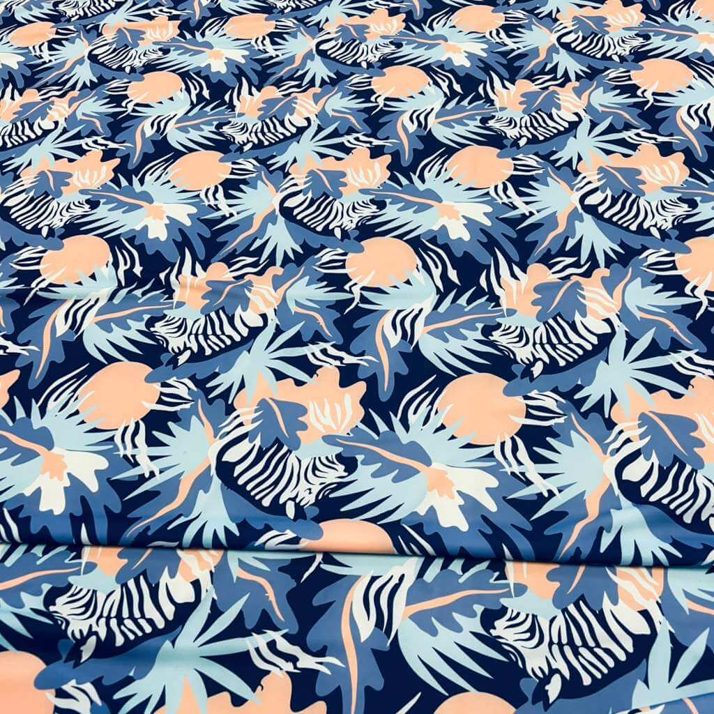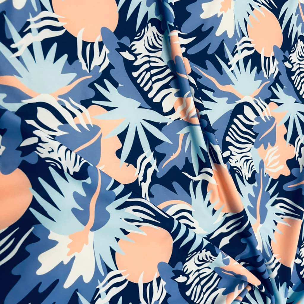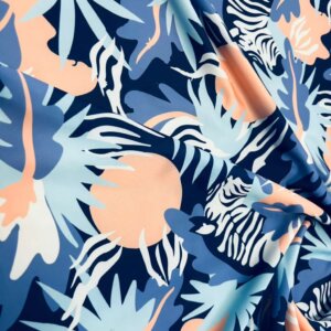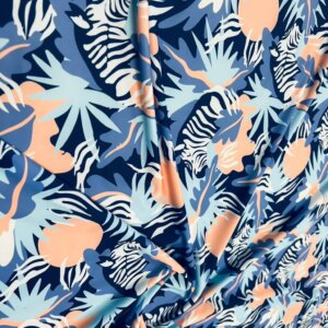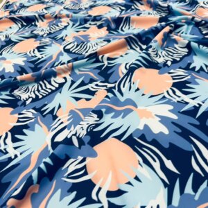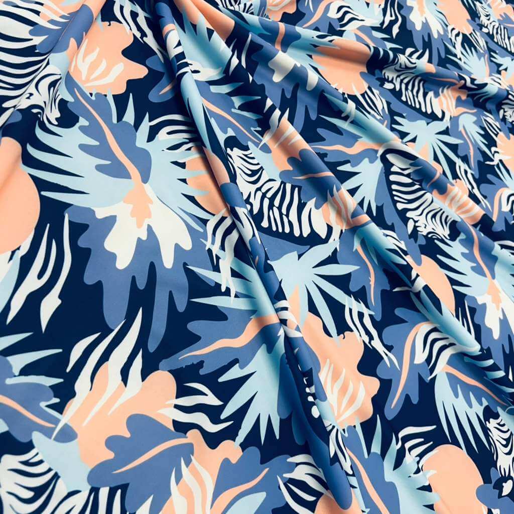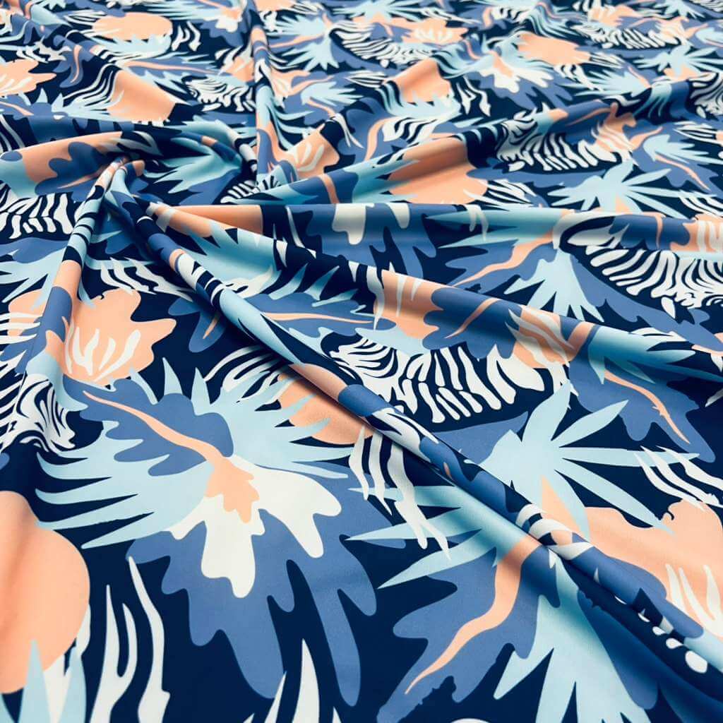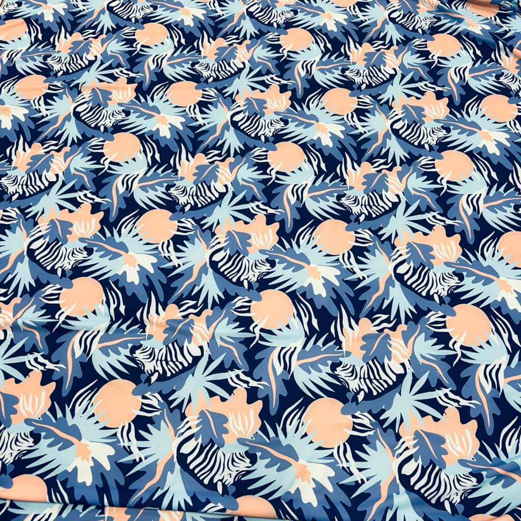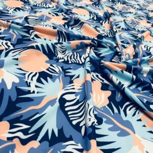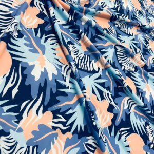 Pastel and Blue Leaves print Nylon Lycra Spandex Fabric 4 Way Strech by Yard for swimwear dancewear dress gymwear (159-2)(15)
