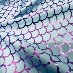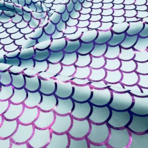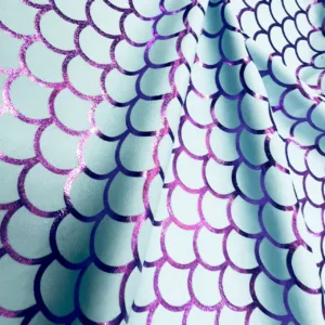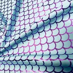 25″ Long / Pastel Blue Scales Metallic Print Nylon Spandex Fabric 4 Way Stretch By Yard (203-7)