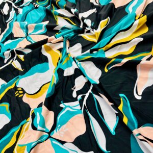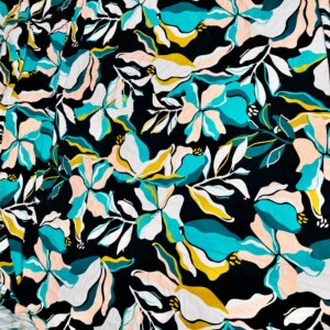 Pastel Flowers Black background Print Nylon Lycra Spandex Fabric 4 Way Stretch By Yard for swimwear dancewear gymwear sportwear dress (203-8)