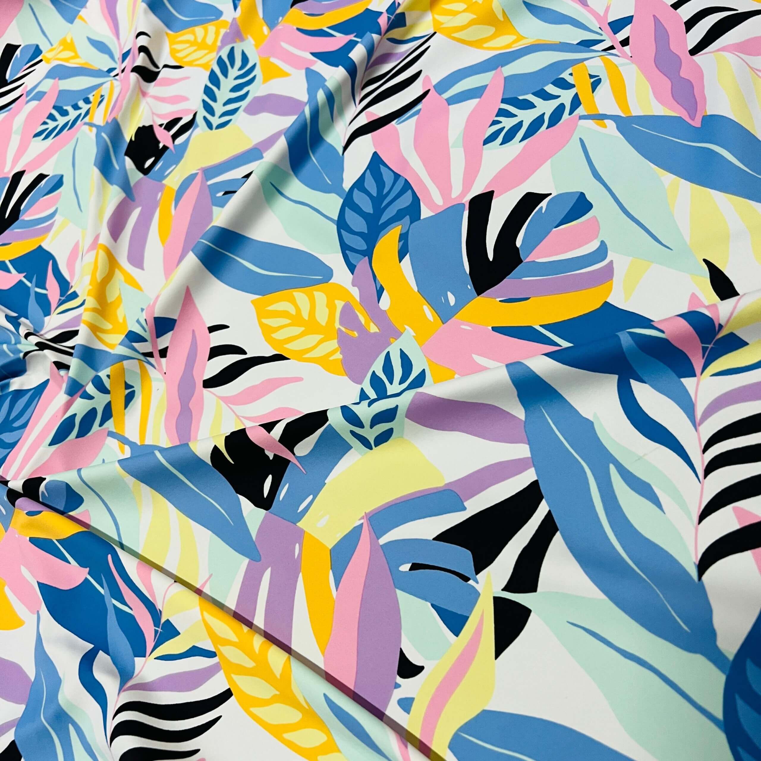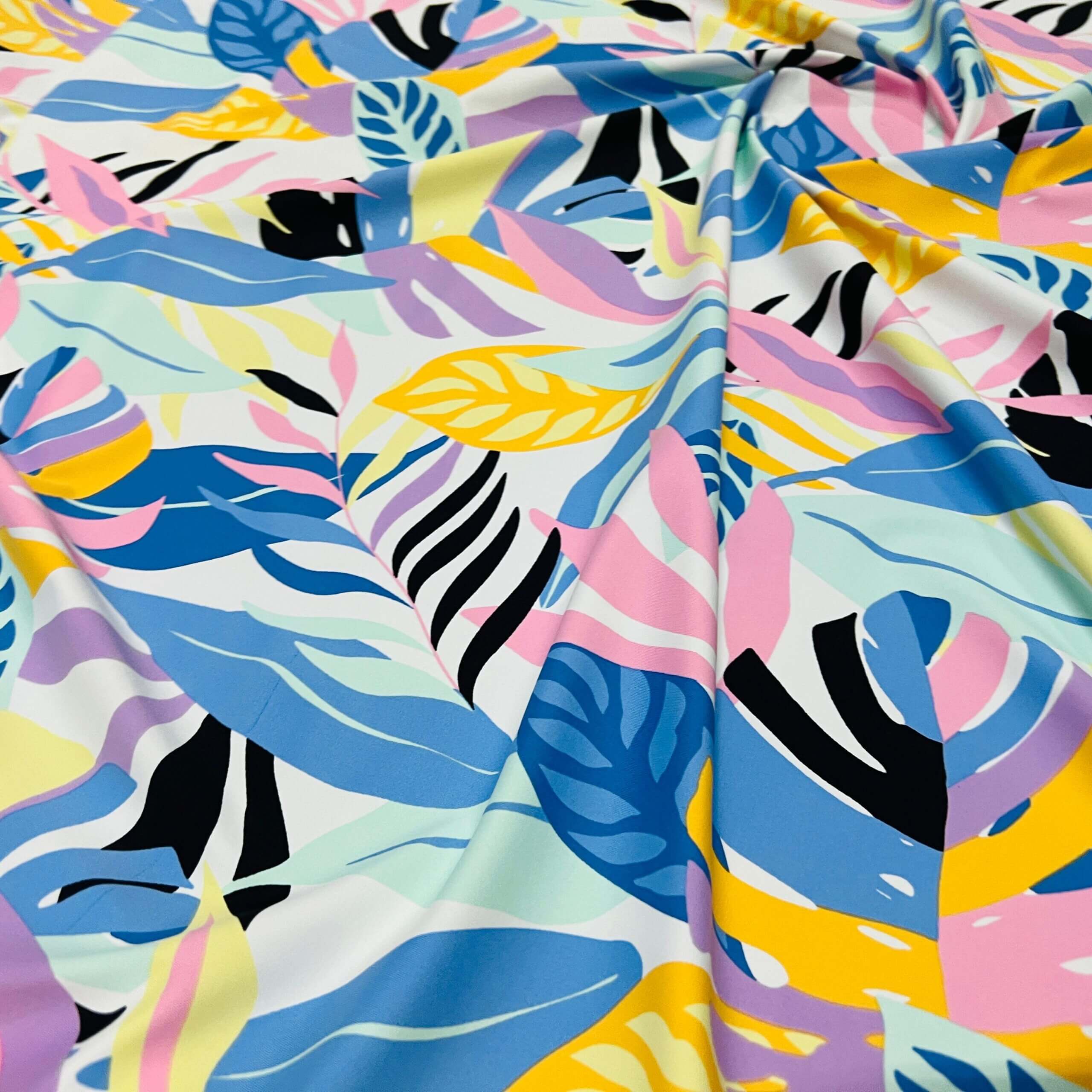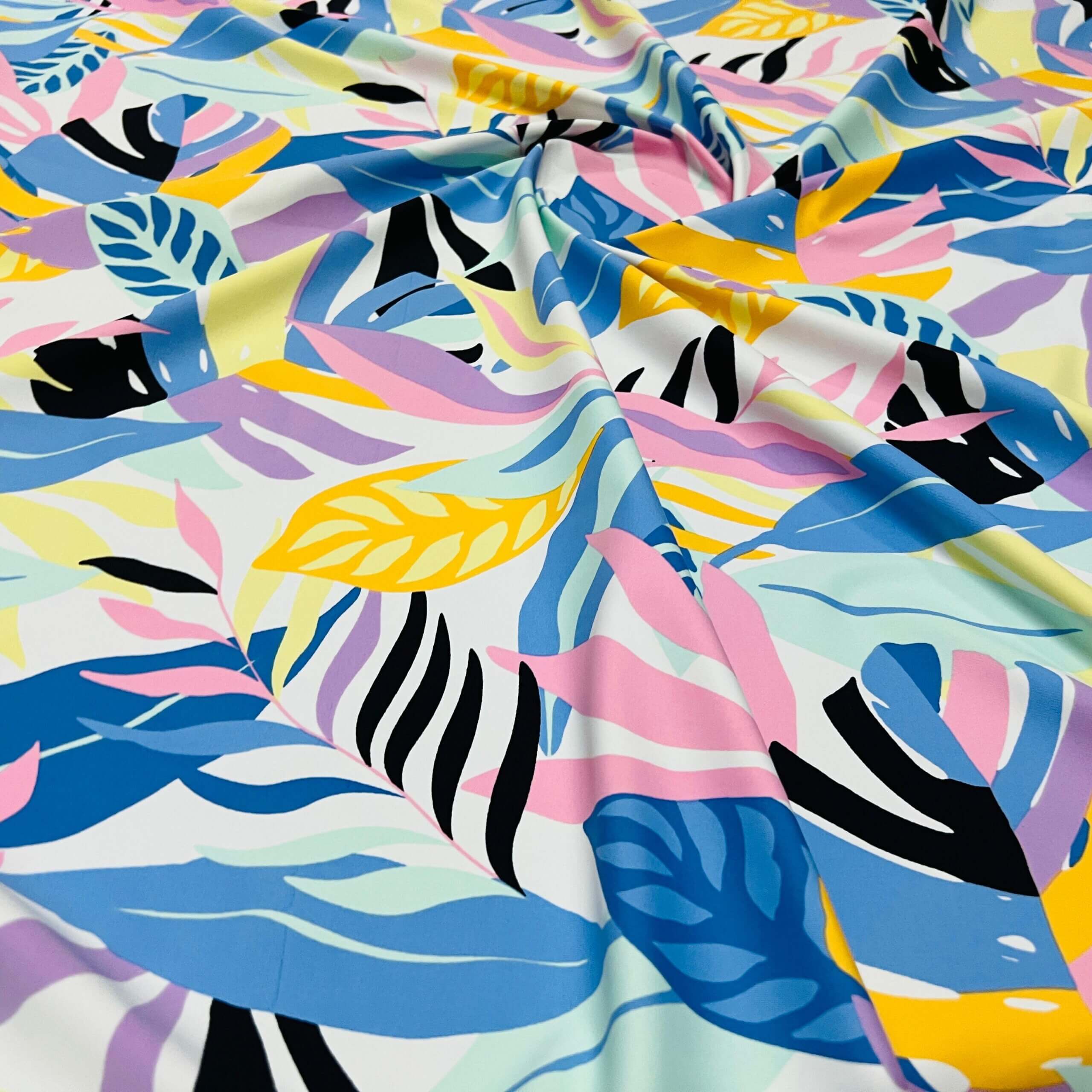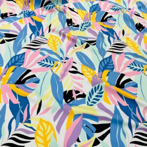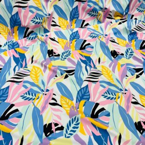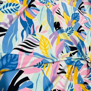Pastel Colored Leaves print Nylon Lycra Spandex Fabric 4 Way Strech by Yard for swimwear dancewear dress gymwear (159-7)(28)