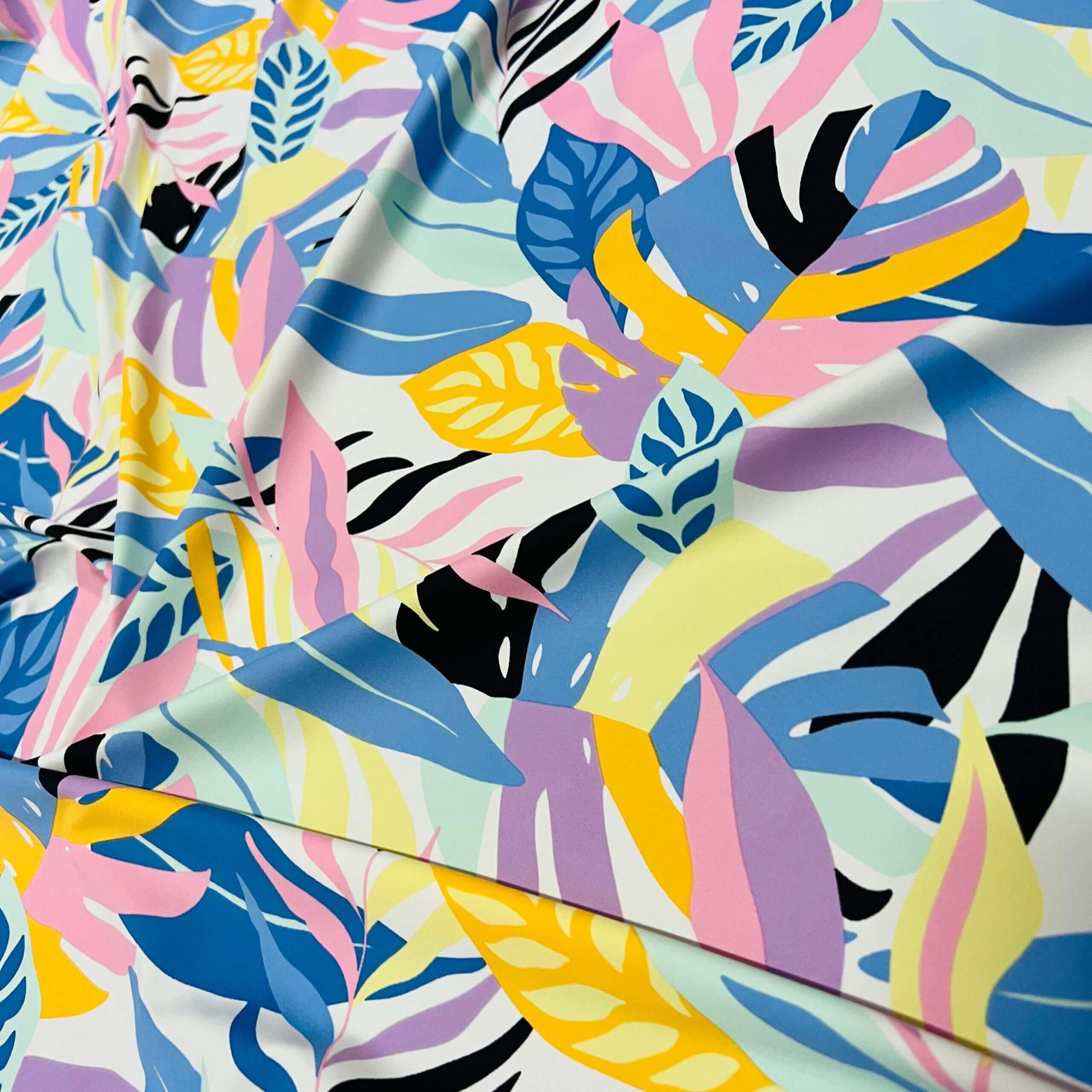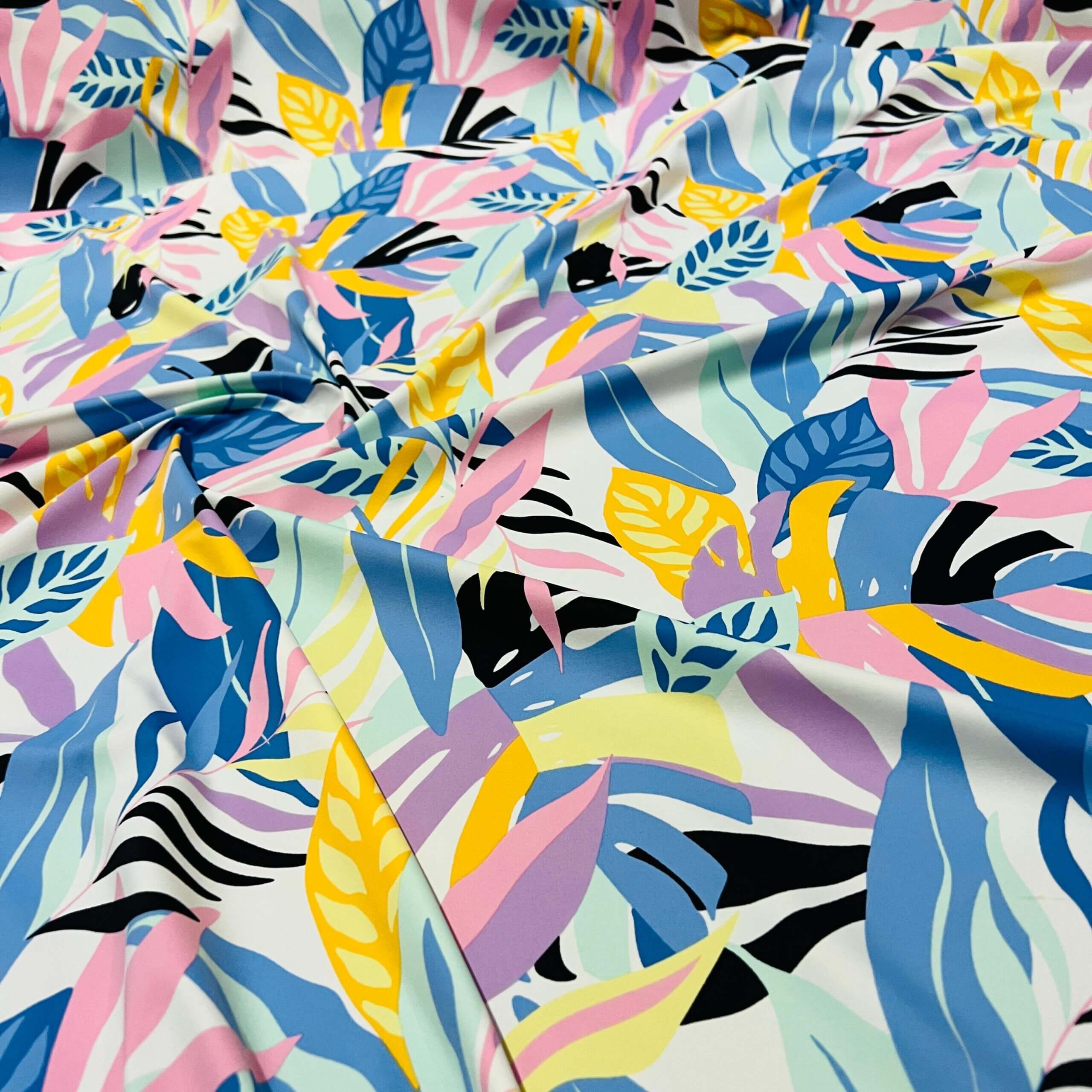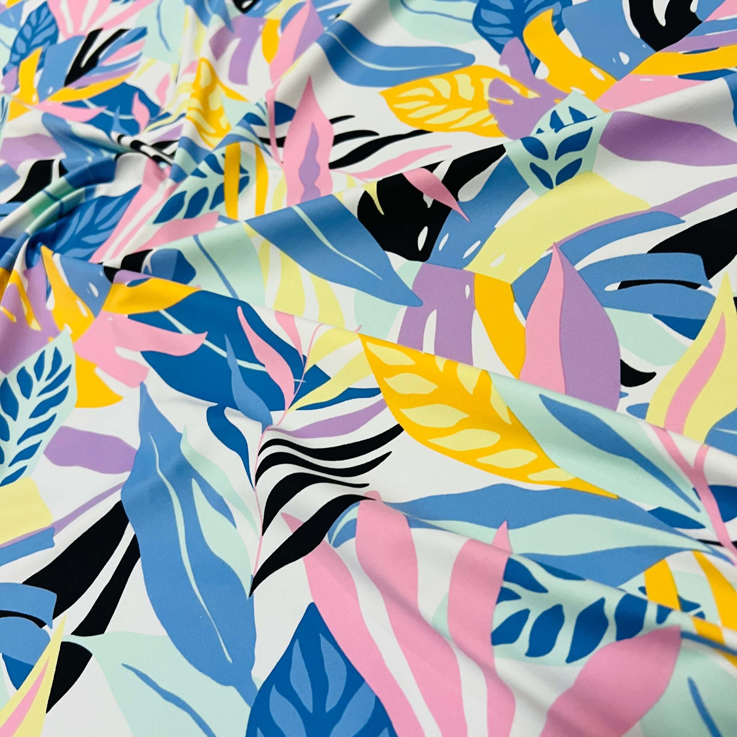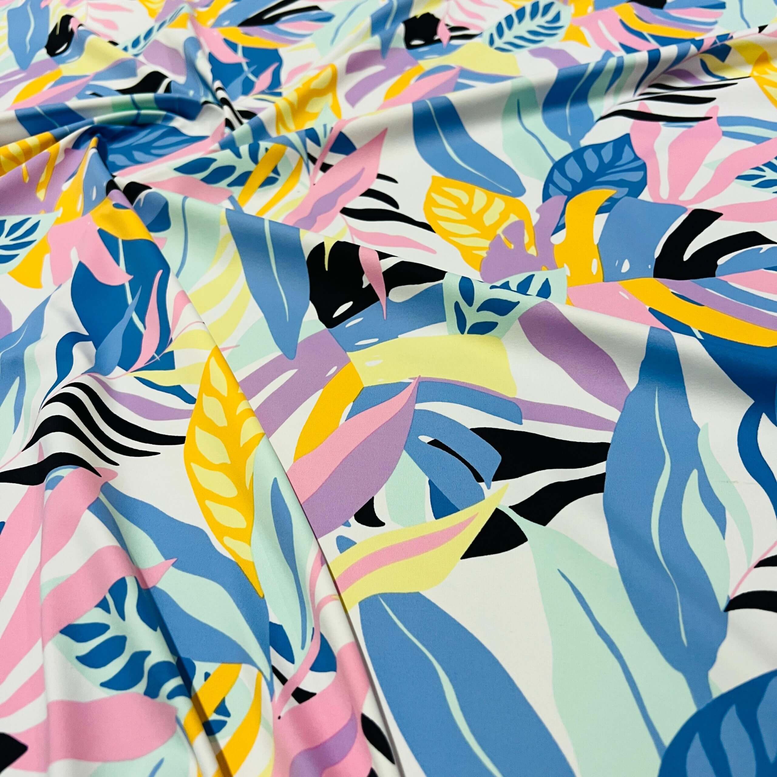 Pastel Colored Leaves print Nylon Lycra Spandex Fabric 4 Way Strech by Yard for swimwear dancewear dress gymwear (159-7)(28)