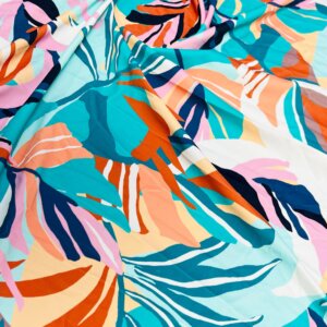 Pastel Colored Leaves Print Nylon Lycra Spandex Fabric 4 Way Stretch By Yard for swimwear dancewear gymwear sportwear dress (279-3)