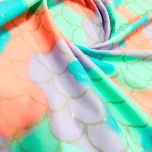 Pastel mermaid scales Print Nylon Spandex Fabric 4 Way Stretch By Yard for swimwear dancewear gymwear sportwear (205-4)