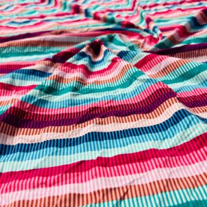 Pastel Multicolor Stripes Print Nylon Lycra Spandex Fabric 4 Way Stretch By Yard for swimwear dancewear gymwear sportwear dress (203-4)