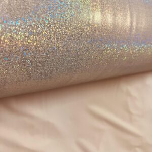 You are viewing Pink Hologram Broken Glass Metallic Foil BlimBlin Nylon Lycra Spandex Fabric 4 Way Stretch By The Yard for swimwear dancewear sportwear dress. Extremely beautiful print weight 200 to 220 GSM 80% Nylon 20% Spandex.