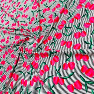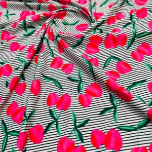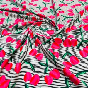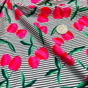 Peaches with Black and White Striped background Print Nylon Lycra Spandex Fabric 4 Way Stretch By Yard for swimwear dancewear gymwear sportwear dress (279-9)