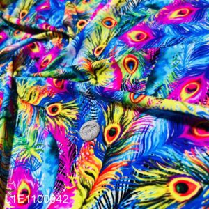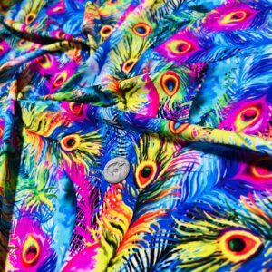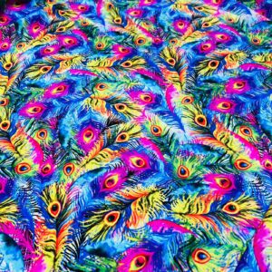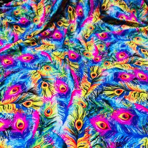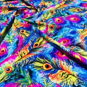 Peacock Feathers Print Nylon Lycra Spandex Fabric 4 Way Strech by Yard for swimwear dancewear dress gymwear (243-2)