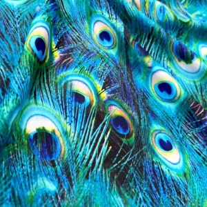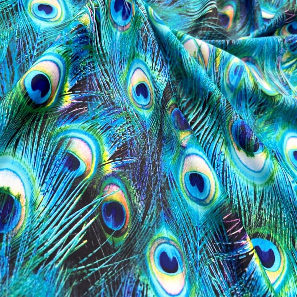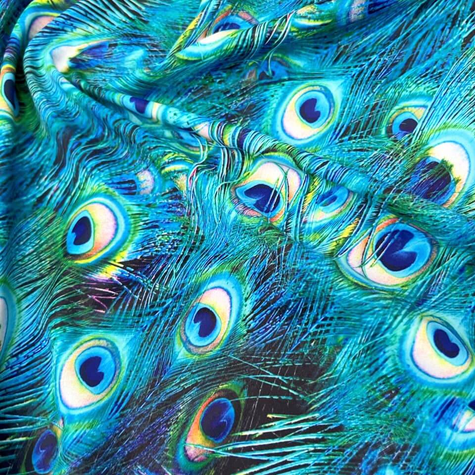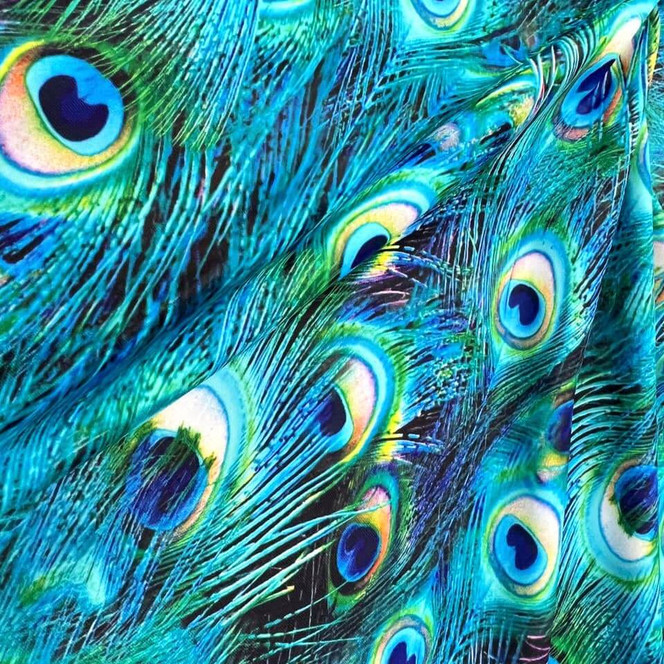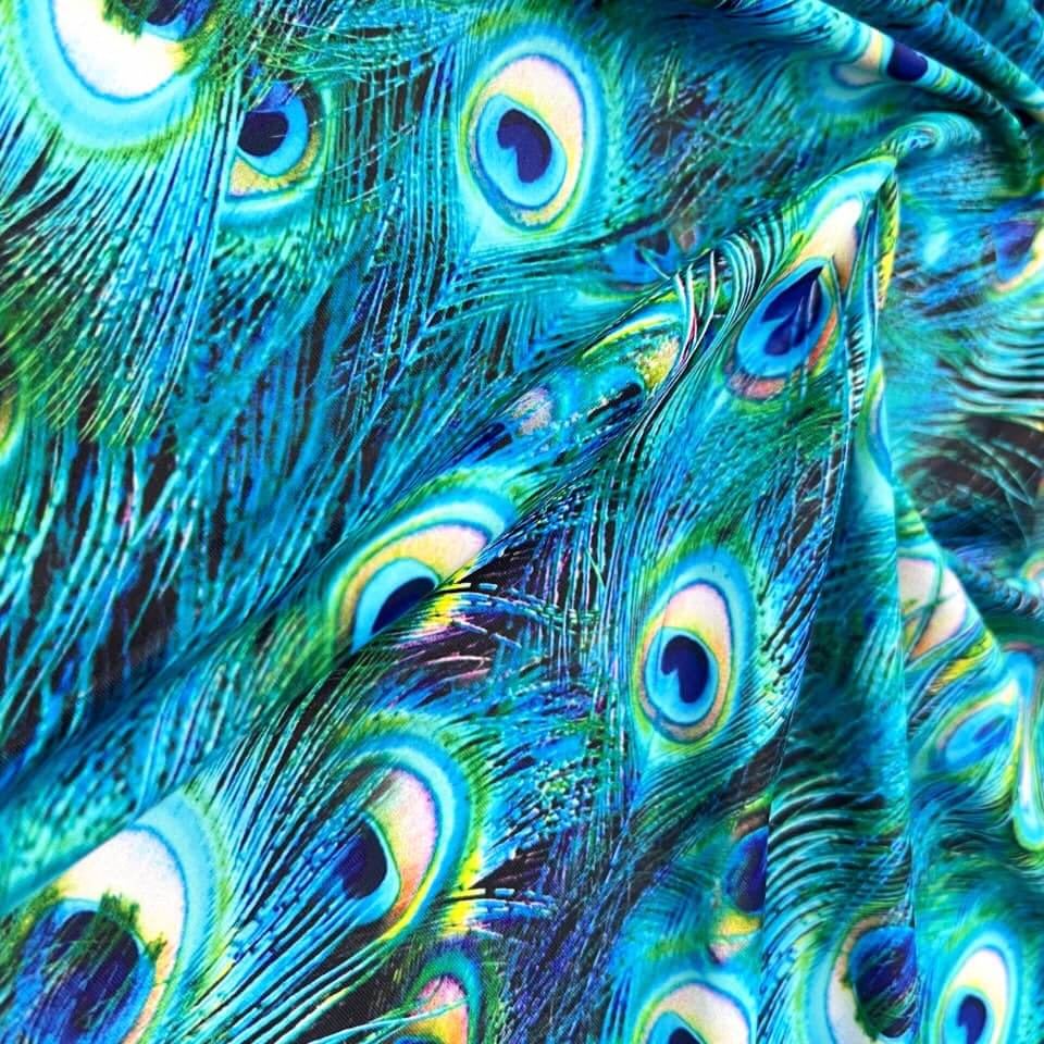 Peacock Feathers Print Nylon Lycra Spandex fabric four way Stretch by Yard for swimwear dancewear dress gymwear (203-8)