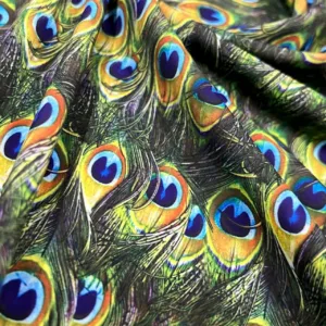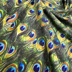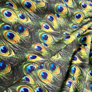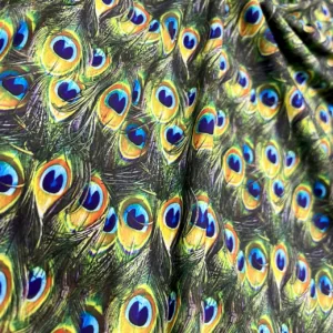 Peacock Feathers Print Nylon Lycra Spandex fabric four way Stretch by Yard for swimwear dancewear dress gymwear (203-3)