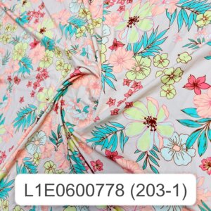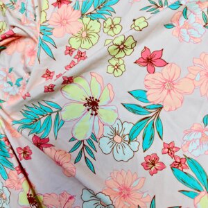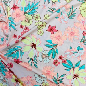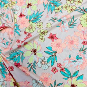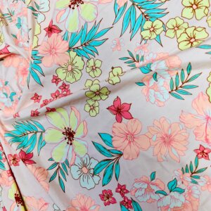 Pink Flowers White Background Print Nylon Lycra Spandex Fabric 4 Way Stretch By Yard for swimwear dancewear gymwear sportwear dress (203-1)