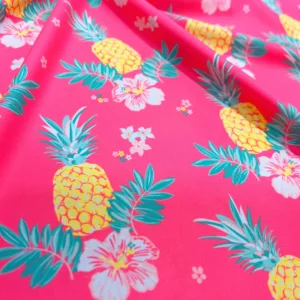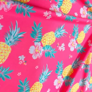 You are viewing Pineapples and Tropical Flowers Print Nylon Spandex Fabric 4 Way Stretch By Yard for swimwear dancewear gymwear sportwear dress skirt
