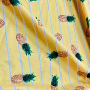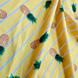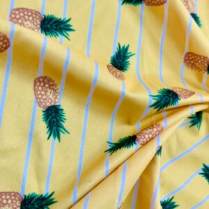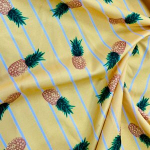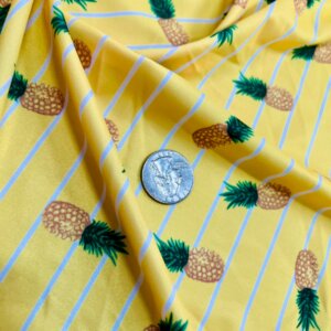 Pineapples Yellow background Print Nylon Lycra Spandex fabric four way Stretch by Yard for swimwear dancewear dress gymwear (203-9)