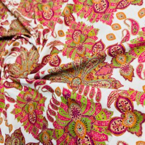Pink and Green Mandala White background Print Nylon Lycra Spandex Fabric 4 Way Stretch By Yard for swimwear dancewear gymwear sportwear dress (203-7)