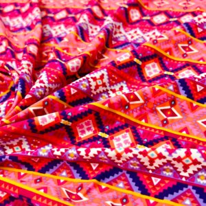 Pink and Purple Ethnic Print Nylon Lycra Spandex Fabric 4 Way Stretch By Yard for swimwear dancewear gymwear sportwear dress (239-7)