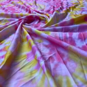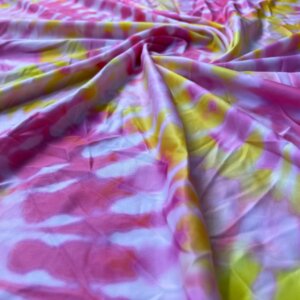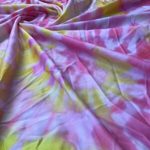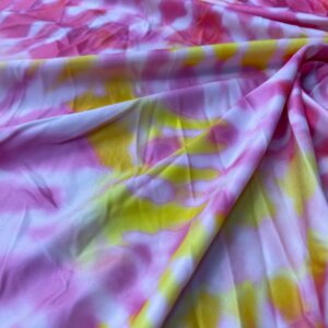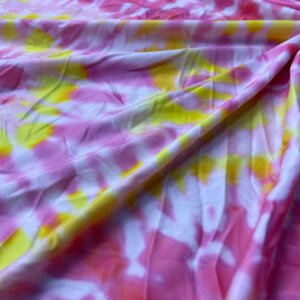 Pink and Yellow Tie Dye Print Nylon Lycra Spandex Fabric 4 Way Stretch By Yard for swimwear dancewear gymwear sportwear dress