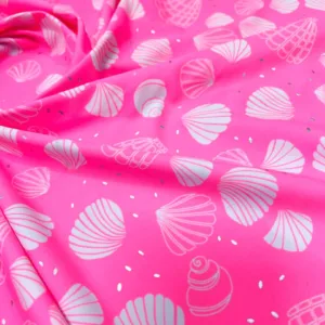 Pink Clam Shell Print Nylon Spandex Fabric 4 Way Stretch By Yard for swimwear dancewear gymwear (204-3)