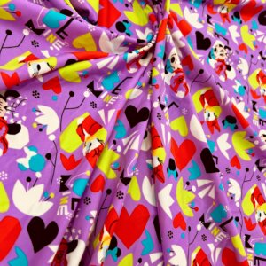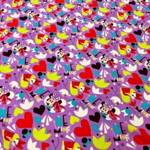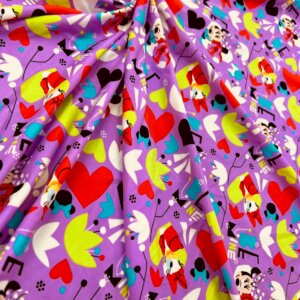 Minnie and Characters Purple background Print Nylon Lycra Spandex Fabric 4 Way Stretch By Yard for swimwear dancewear gymwear sportwear dress (239-7)