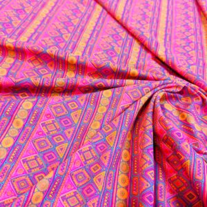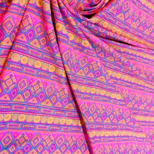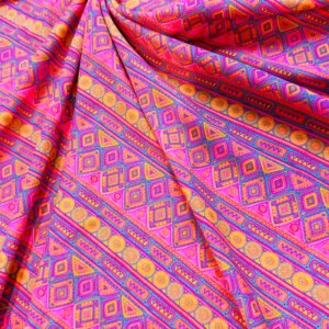 Pink Ethnic Print Nylon Lycra Spandex Fabric 4 Way Stretch for Swimwear Dancewear Sportwear