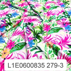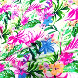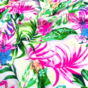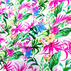 Pink Flowers and Leaves Print Nylon Lycra Spandex Fabric 4 Way Stretch By Yard for swimwear dancewear gymwear sportwear dress (279-3)