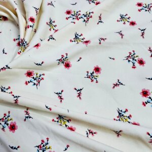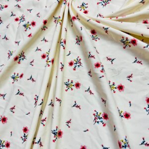 Pink Flowers White Background Print Nylon Lycra Spandex Fabric 4 Way Stretch By Yard for swimwear dancewear gymwear sportwear dress (203-8)