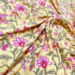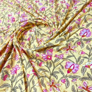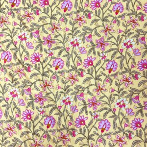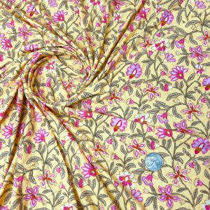 Pink Flowers Yellow Background Print Nylon Lycra Spandex Fabric 4 Way Stretch By Yard for swimwear dancewear gymwear sportwear dress (239-7)
