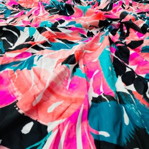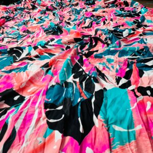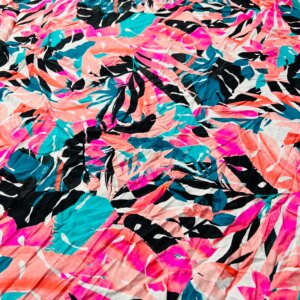 Pink Leaves Print Nylon Lycra Spandex Fabric 4 Way Stretch By Yard for swimwear dancewear gymwear sportwear dress (203-7)