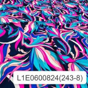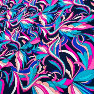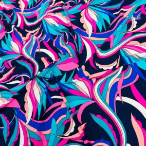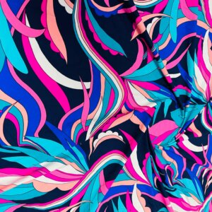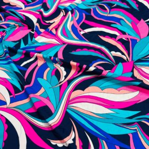 24″ Long / Pink Purple and Blue Leaves Print Nylon Lycra Spandex Fabric 4 Way Stretch By Yard for swimwear dancewear gymwear sportwear dress (205-8)