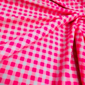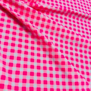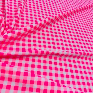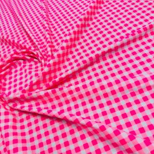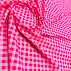 (1YD LONG X 45″ WIDE) Plaid Vichy Pink Print Nylon Lycra Spandex Fabric 4 Way Stretch By Yard for swimwear dancewear gymwear sportwear dress (203-2)