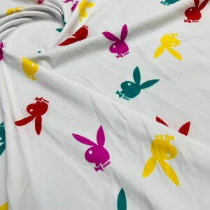 18″ Long / PlayBoy Print Nylon Lycra Spandex Fabric 4 Way Stretch By Yard for swimwear dancewear gymwear sportwear dress (203-8)
