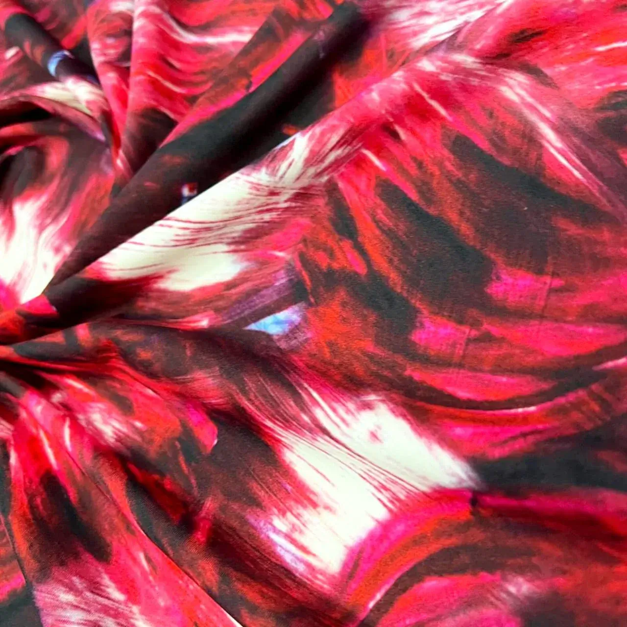 Plum Red Abstract Print Nylon Lycra Spandex fabric four way Stretch by Yard for swimwear dancewear dress gymwear (243-8)