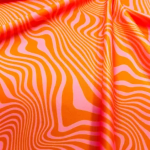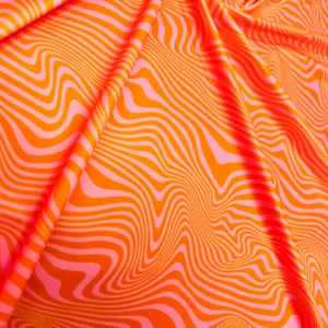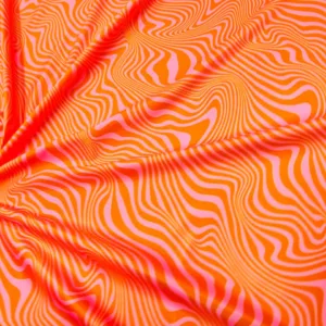 Psychedelic Orange Distorted Stripes Print Nylon Lycra Spandex fabric four way Stretch by Yard for swimwear dancewear dress gymwear (203-8)