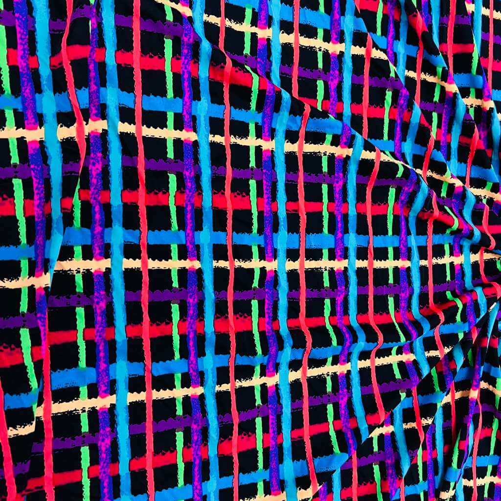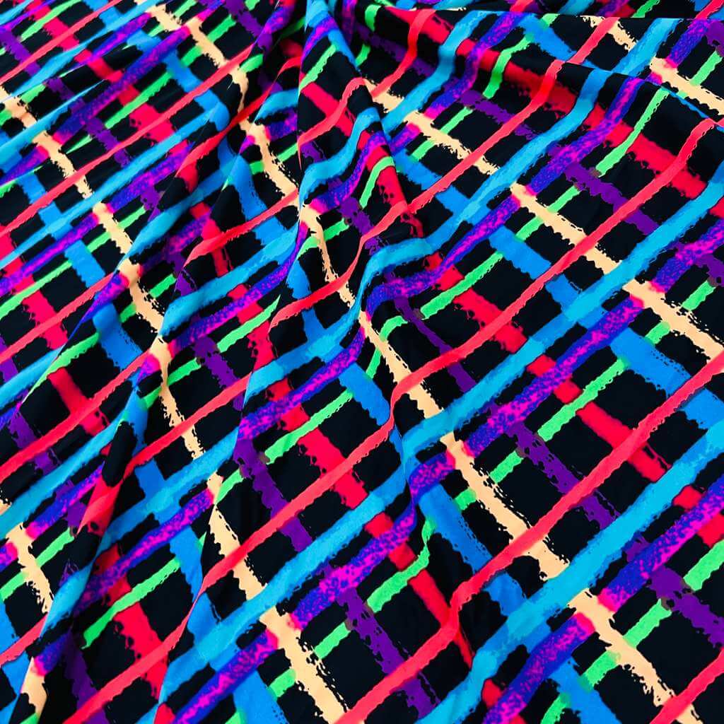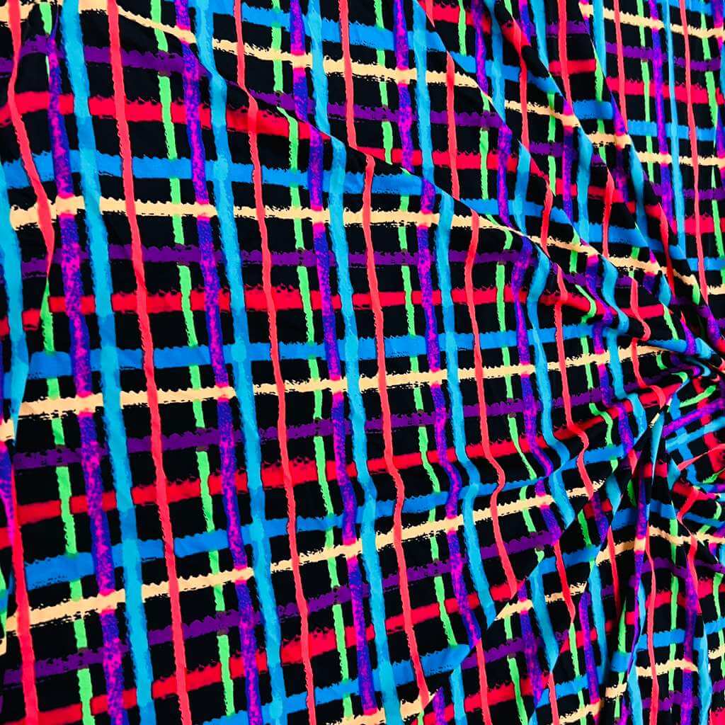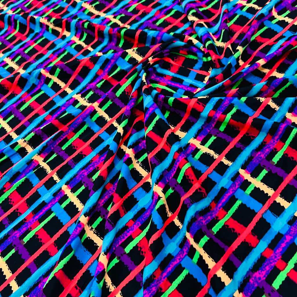 Psychedelic Plaid Print Nylon Lycra Spandex Fabric 4 Way Stretch By Yard for swimwear dancewear gymwear sportwear dress
