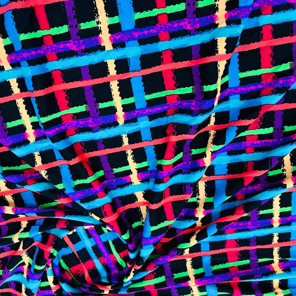 Psychedelic Plaid Nylon Lycra Spandex Fabric 4 Way Stretch By Yard for swimwear dancewear gymwear sportwear dress
