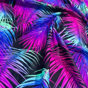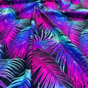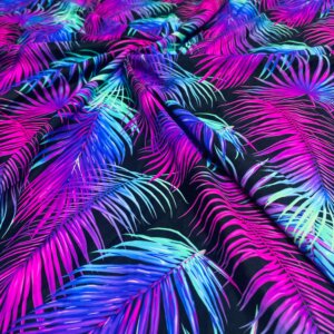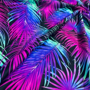 Purple and Aquamarine Leaves Print Nylon Lycra Spandex Fabric 4 Way Stretch By Yard for swimwear dancewear gymwear sportwear dress (205-8)