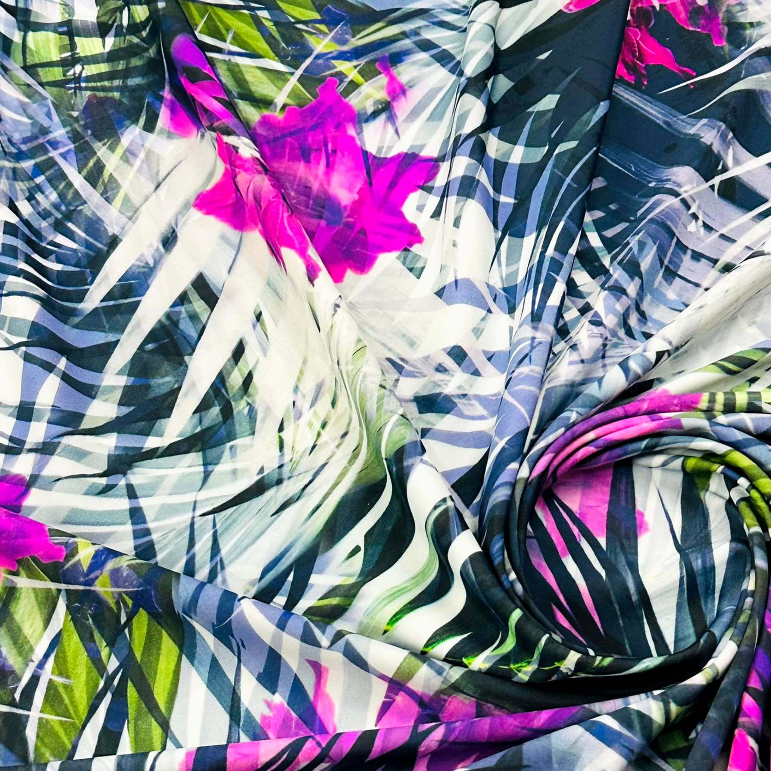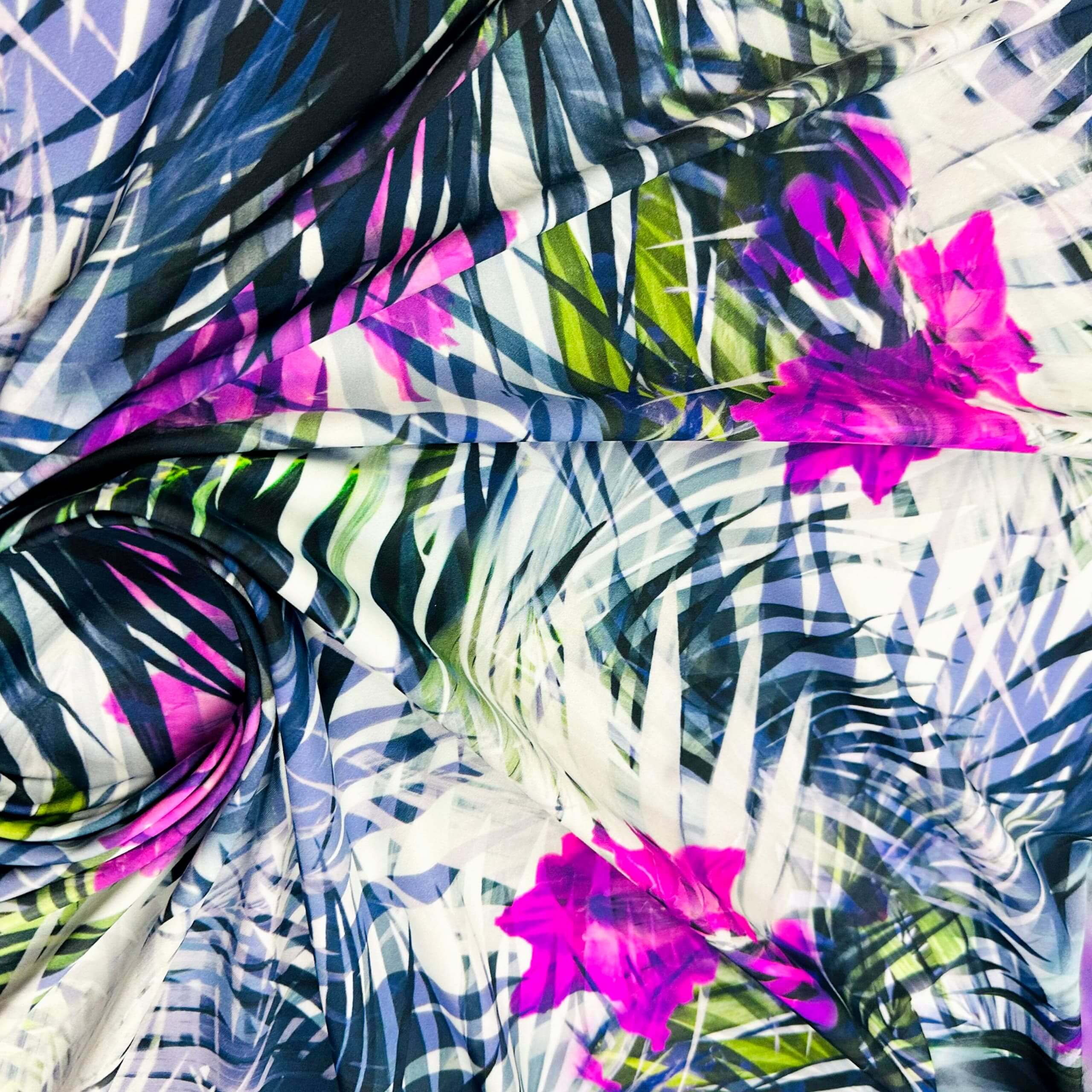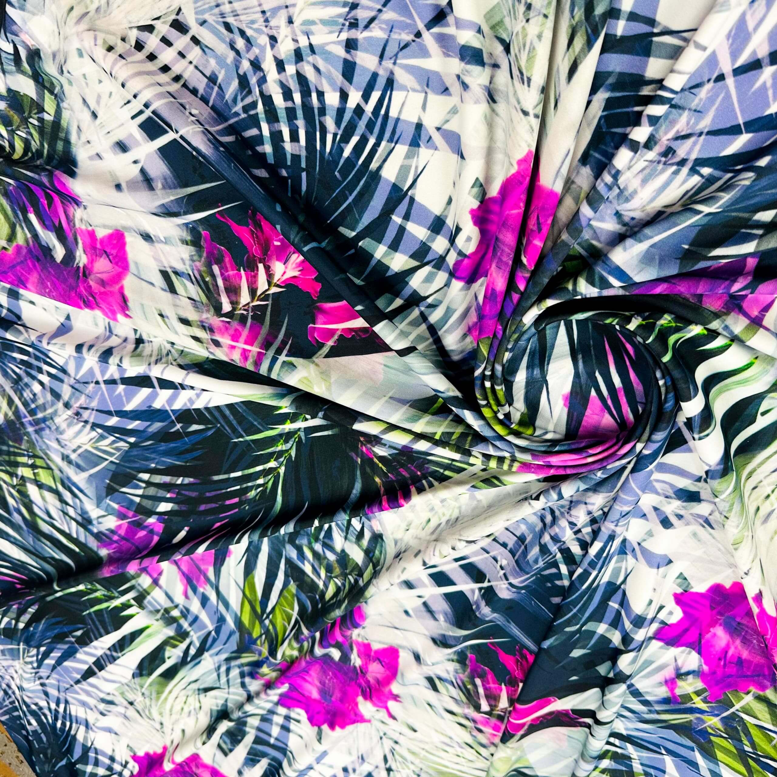 Purple and Blue Leaves Print Nylon Lycra Spandex Fabric 4 Way Stretch By Yard