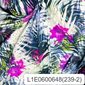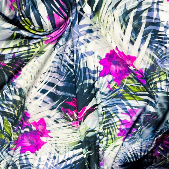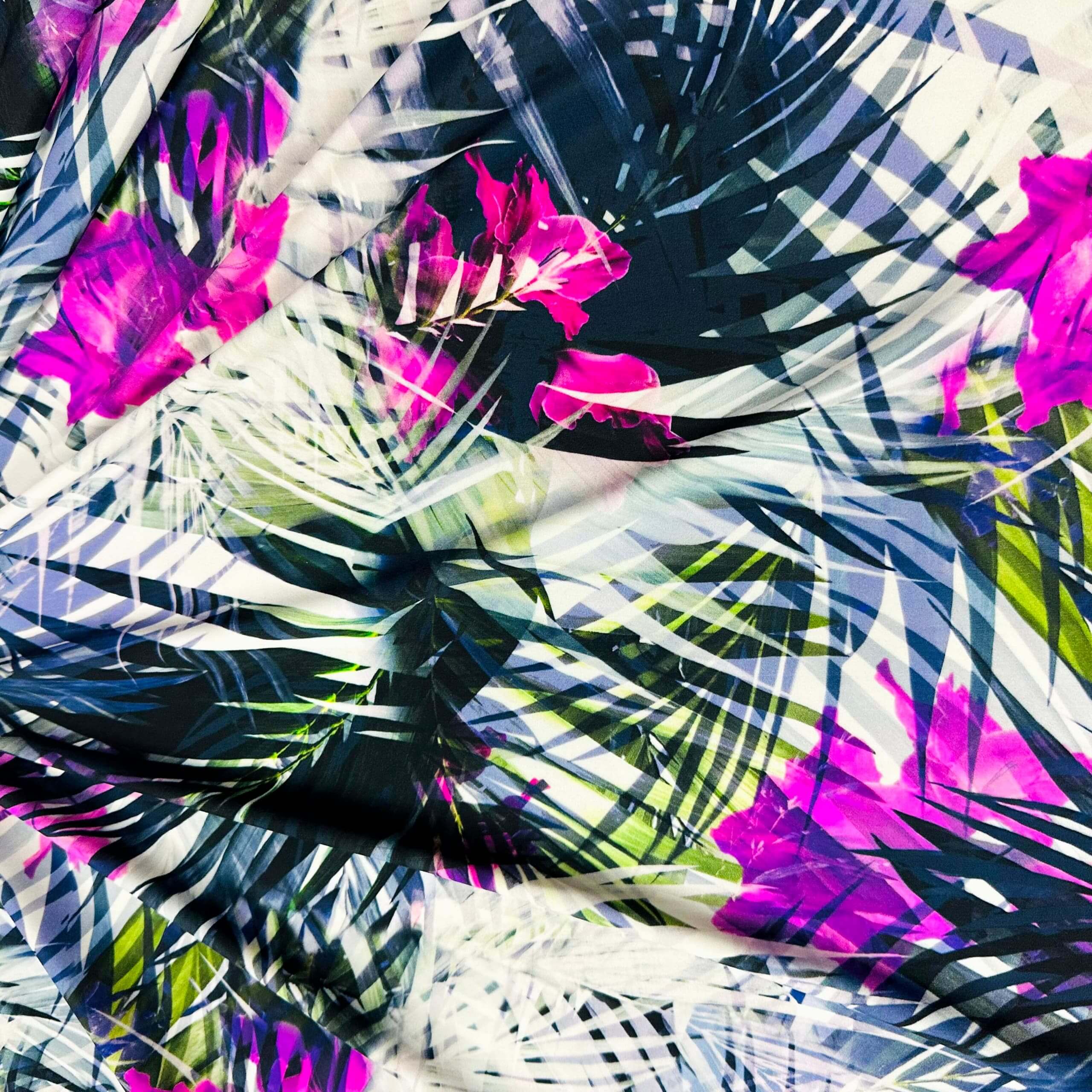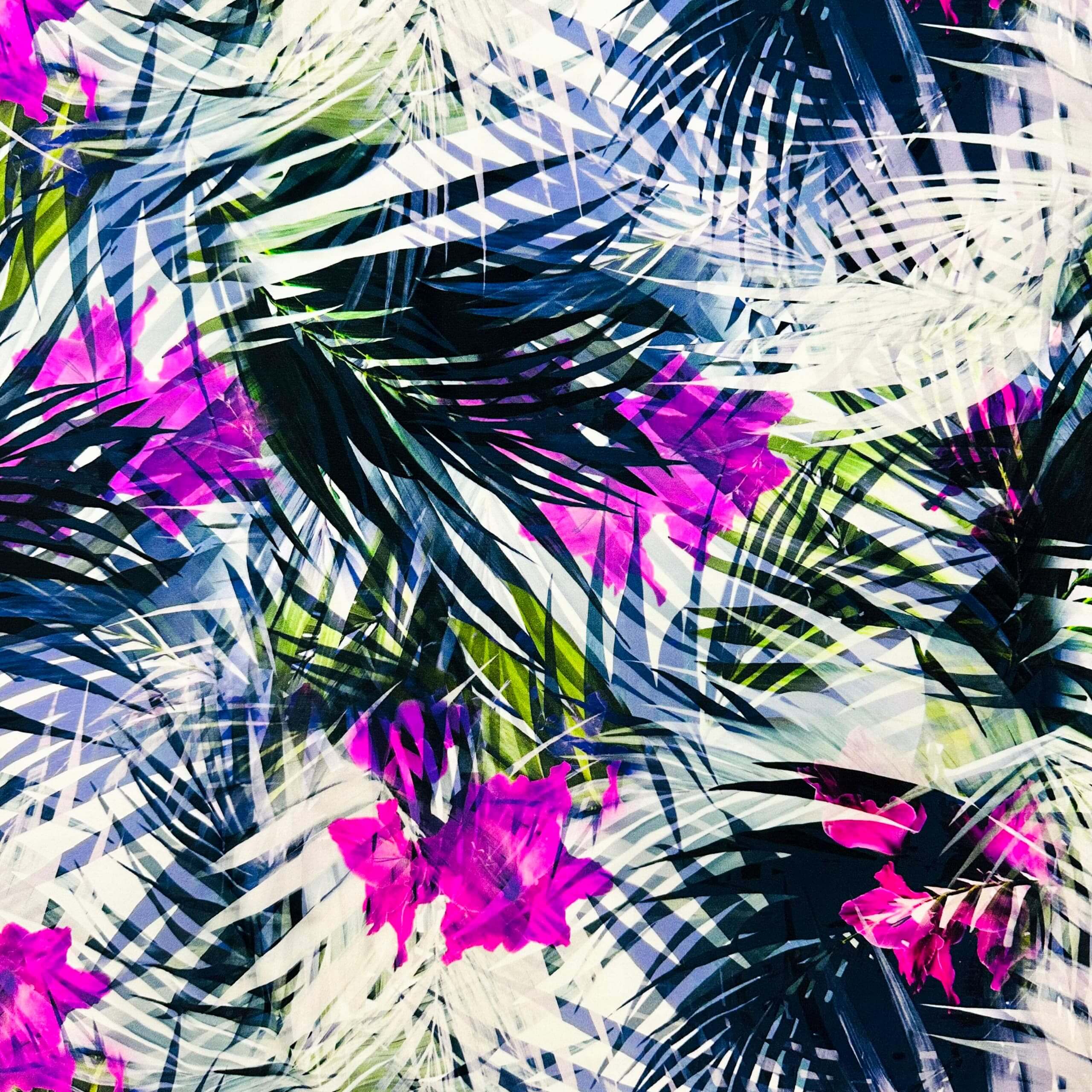 Purple and Blue Leaves Print Nylon Lycra Spandex Fabric 4 Way Stretch By Yard