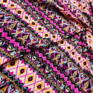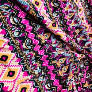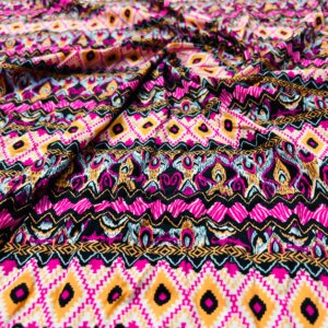 Purple and Orange Ethnic Print Nylon Spandex Fabric 4 Way Stretch for swimwear dancewear gymwear sportwear dress skirt
