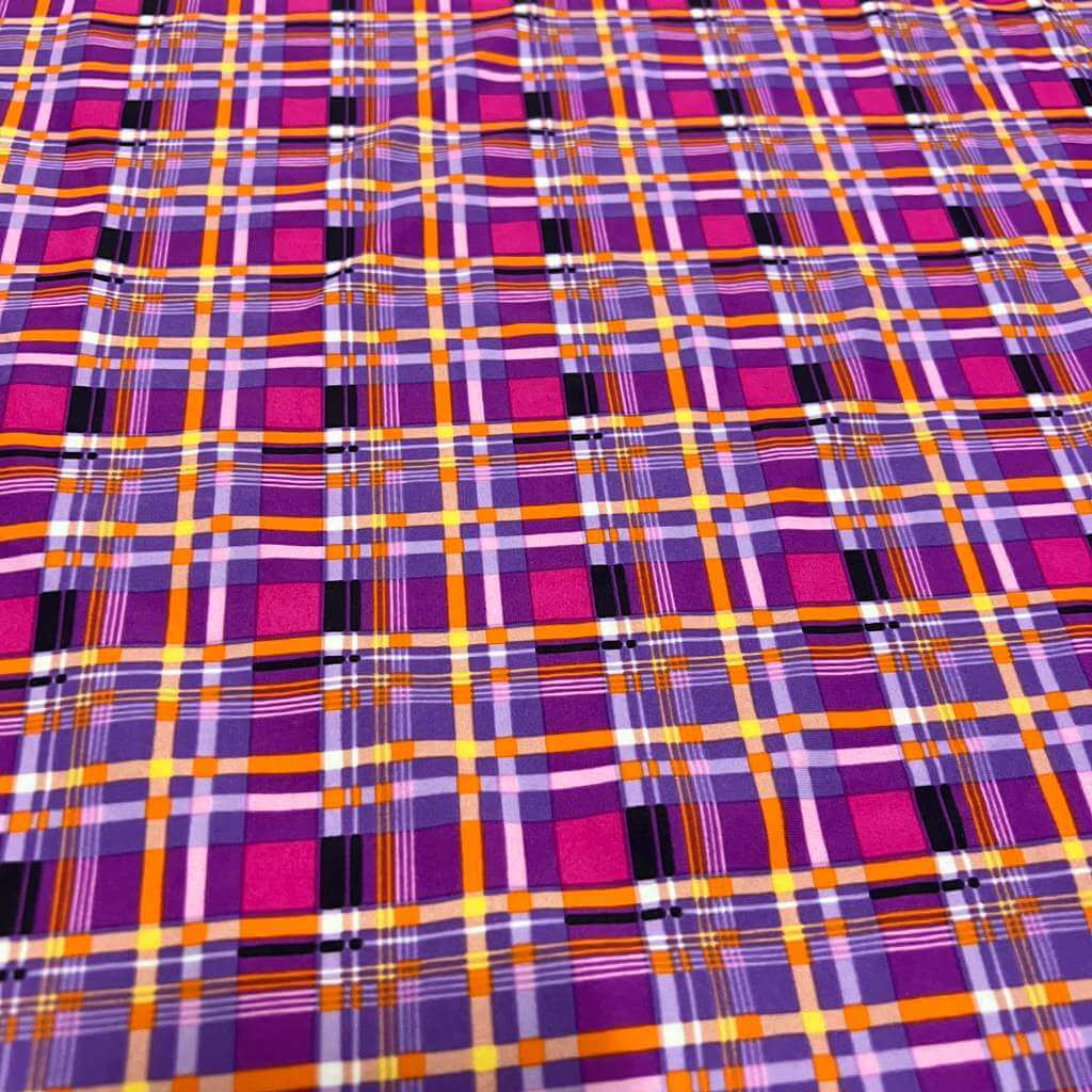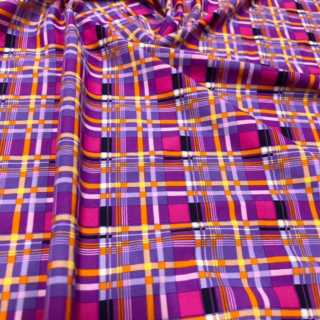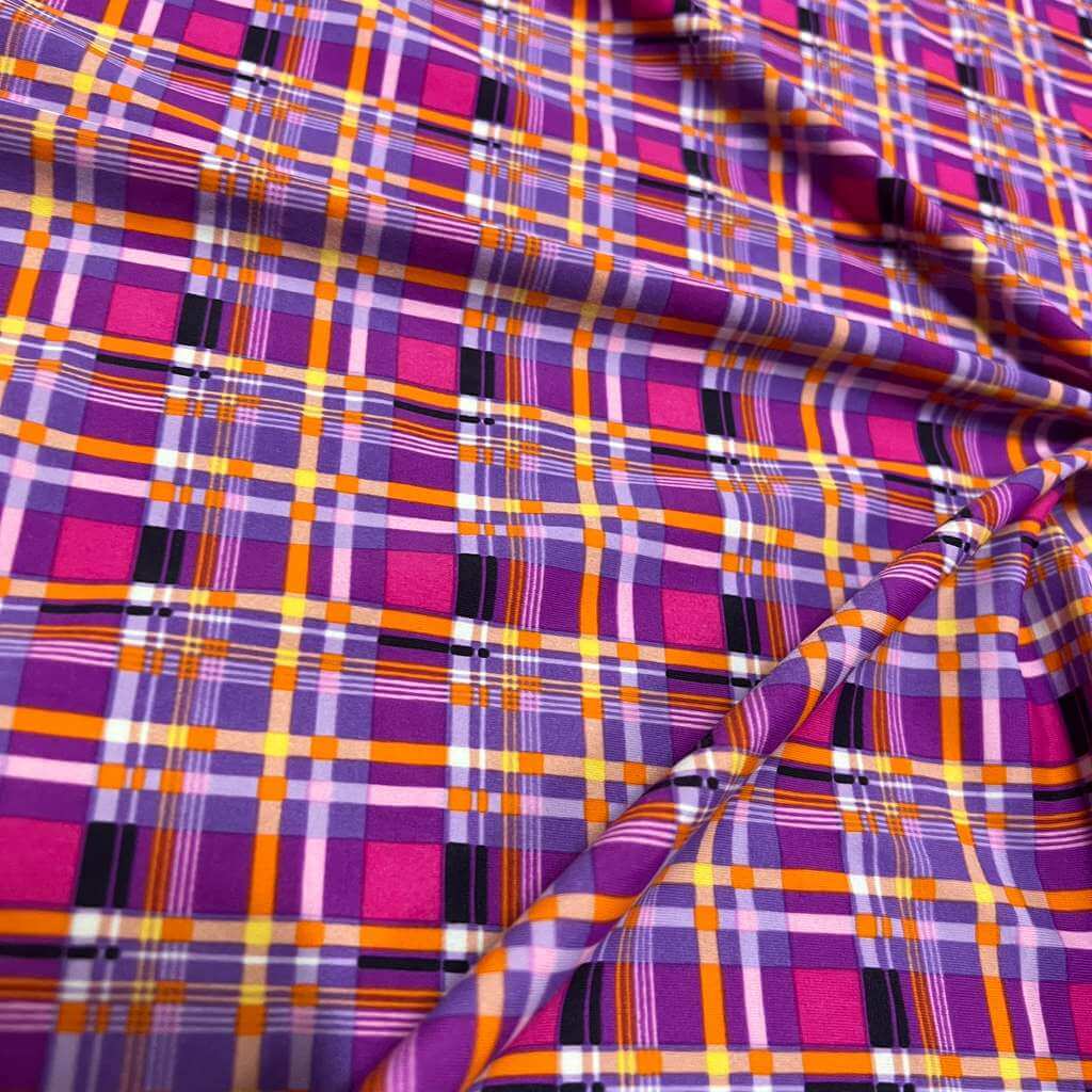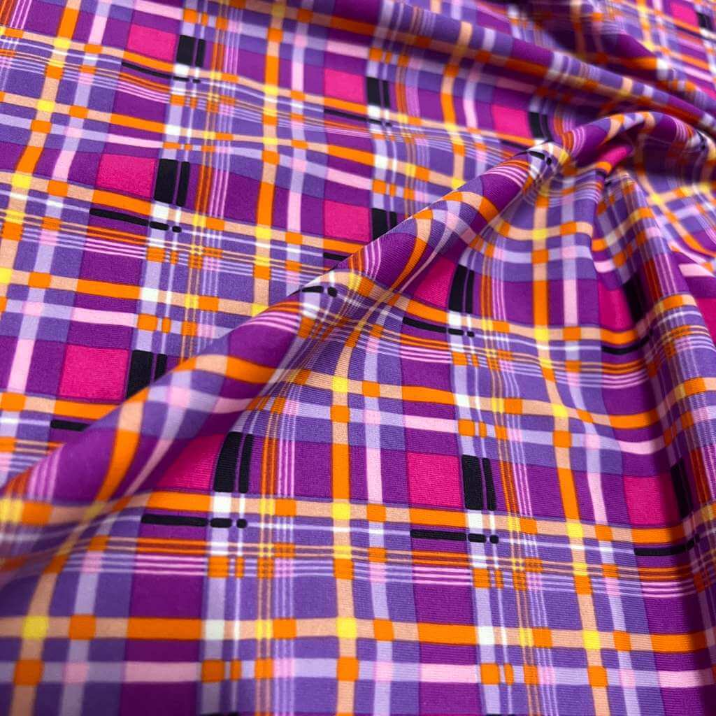 Purple and Orange Plaid Print Nylon Lycra Spandex Fabric 4 Way Stretch By Yard for swimwear dancewear gymwear sportwear dress (159)(22)