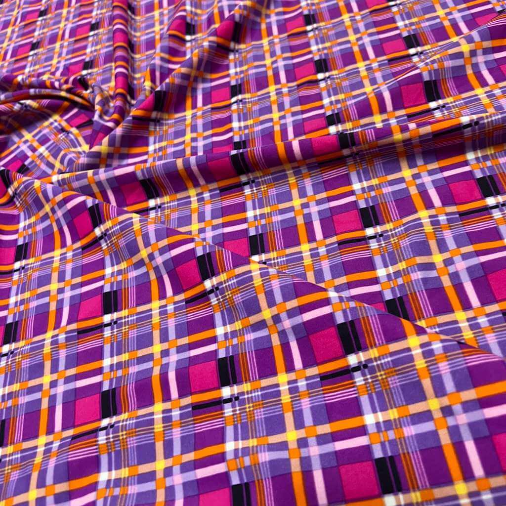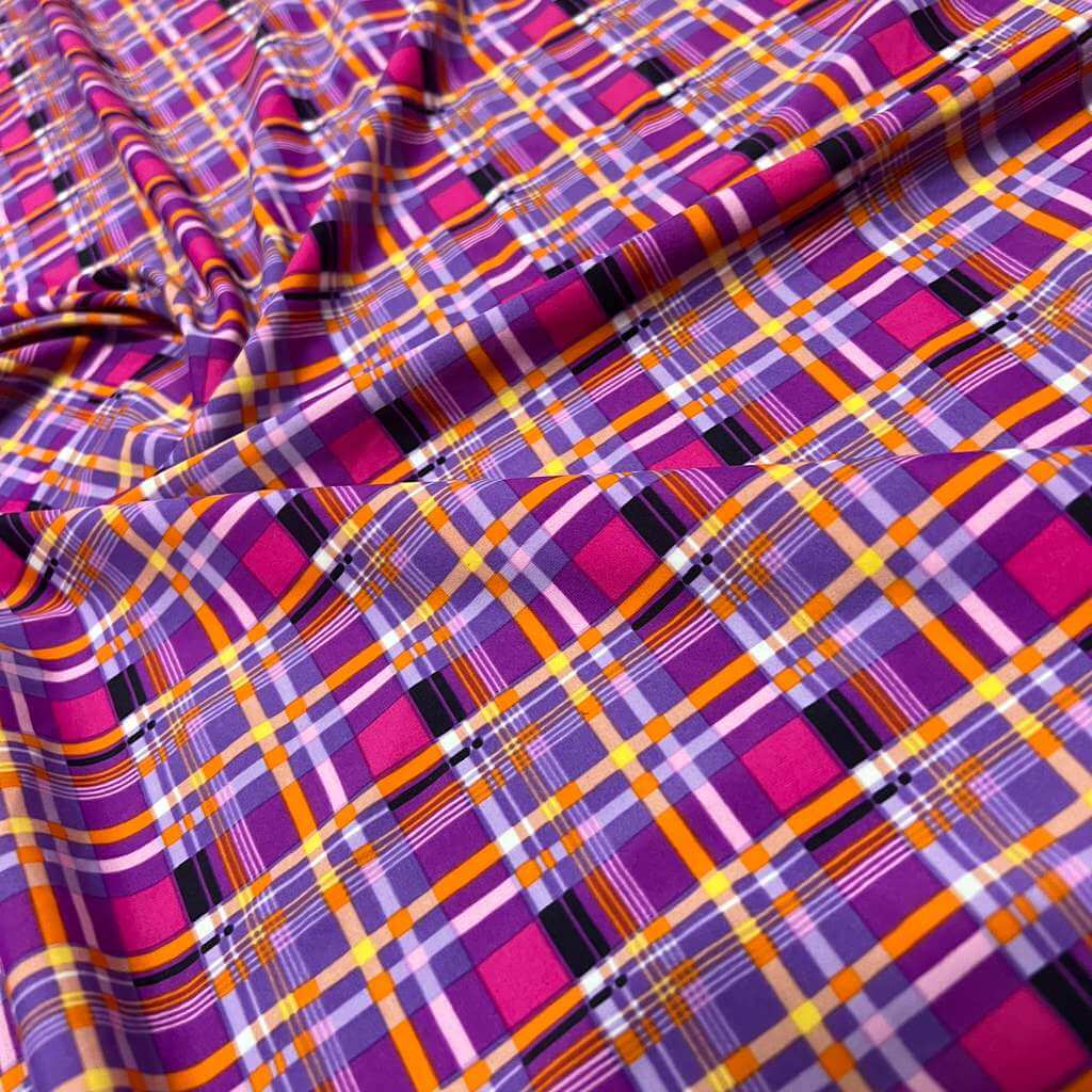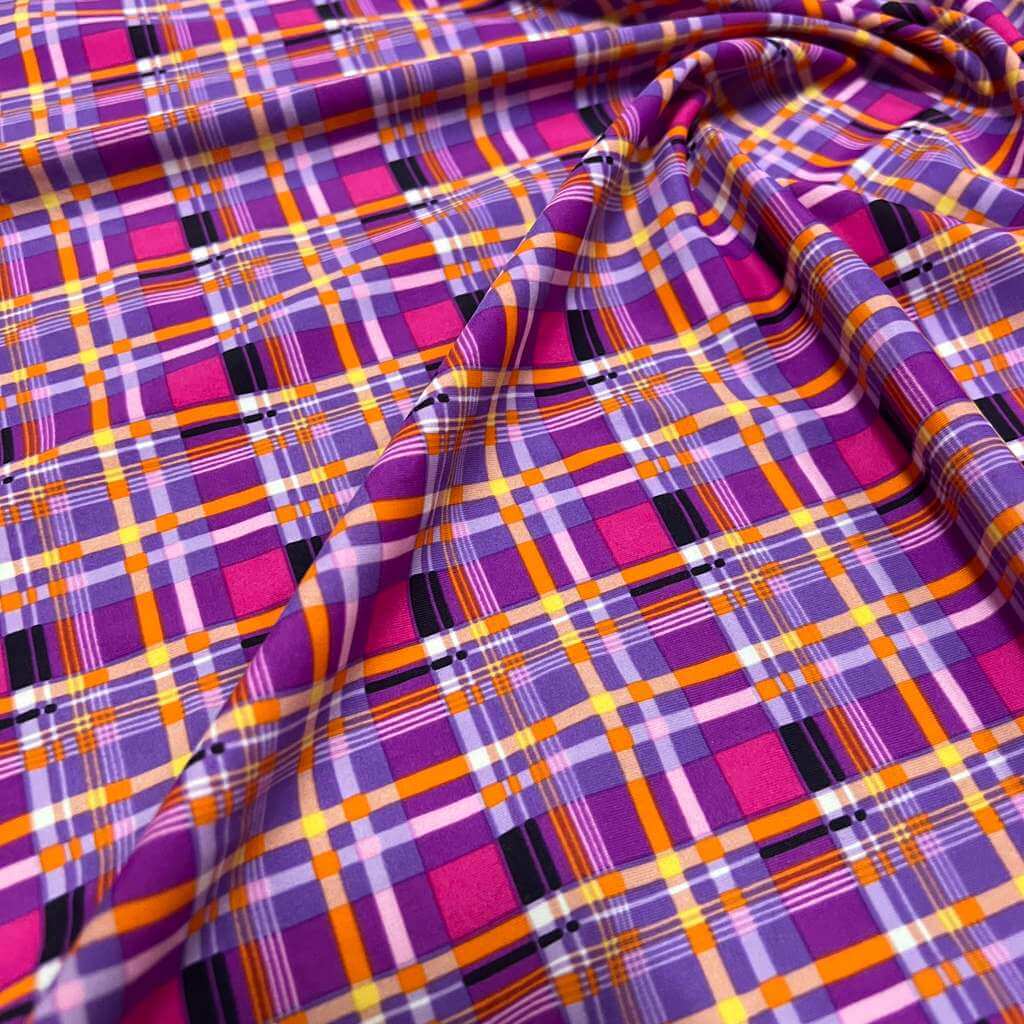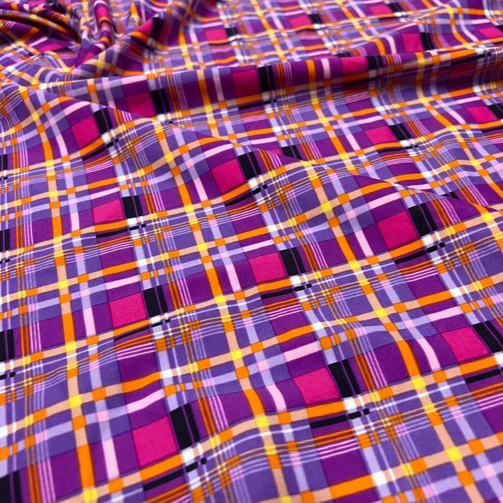 Purple and Orange Plaid Print Nylon Lycra Spandex Fabric 4 Way Stretch By Yard for swimwear dancewear gymwear sportwear dress (159)(22)
