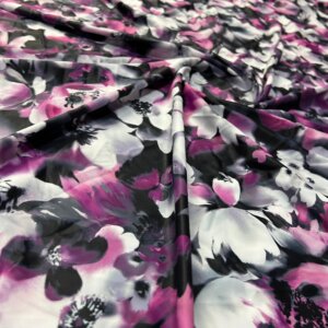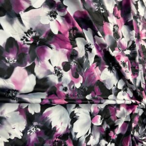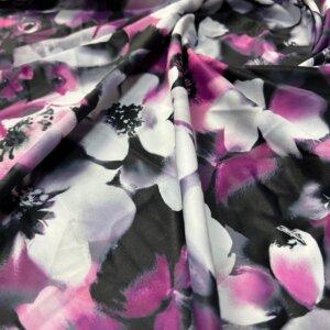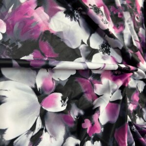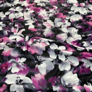 Purple and White Flowers Print Nylon Spandex Fabric 4 Way Stretch for swimwear dancewear gymwear sportwear dress skirt (239-14)