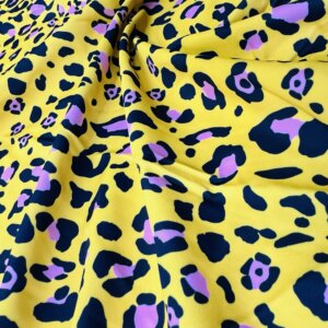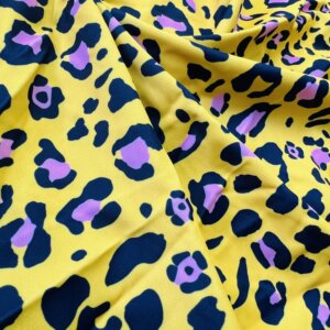 Purple Animal Print with Yellow Background Nylon lycra Spandex Fabric 4 Way Stretch By Yard (279)