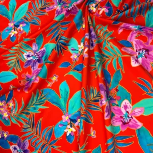 Purple Cayennes Red background Print Nylon Spandex Fabric 4 Way Stretch By Yard for swimwear dancewear gymwear sportwear dress skirt (239-11)