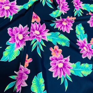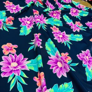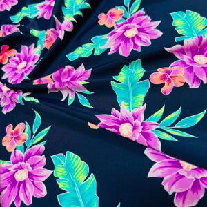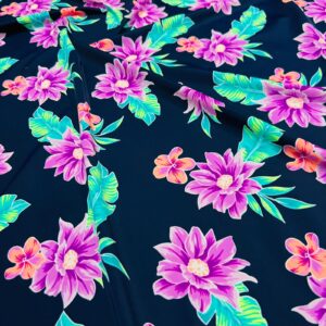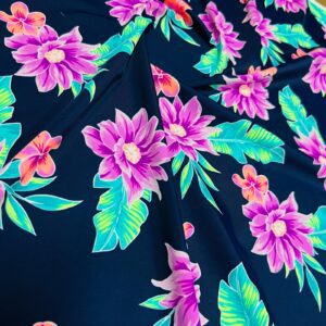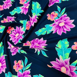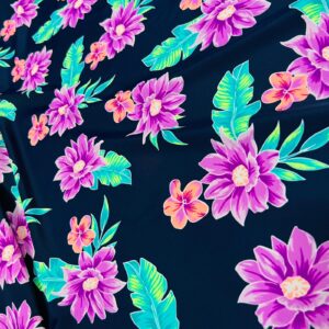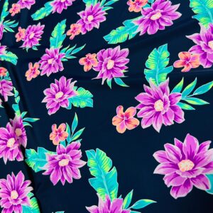 Purple Floral Print Nylon Lycra Spandex Fabric 4 Way Stretch by Yard for Swimwear dancewear dress gymwear (279-11)