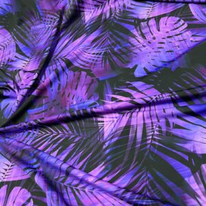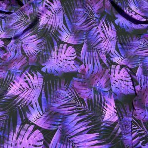 Purple Leaves Black background Print Nylon Lycra Spandex Fabric 4 Way Strech by Yard for swimwear dancewear dress gymwear (242-9)
