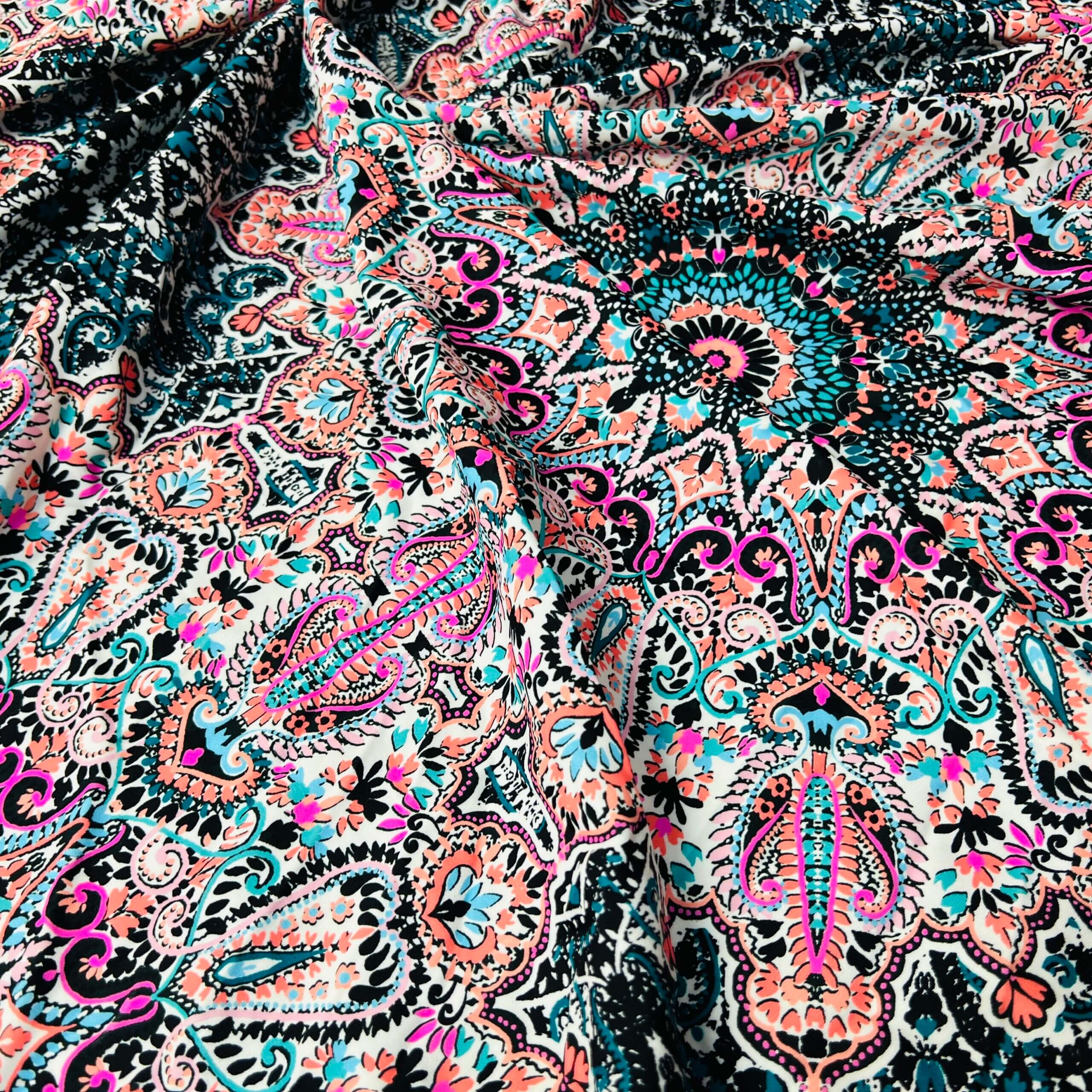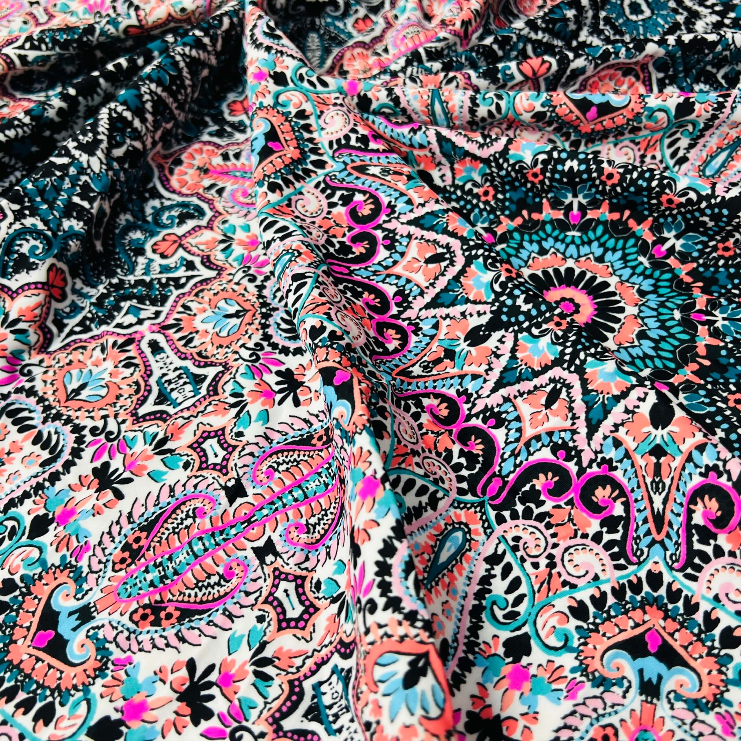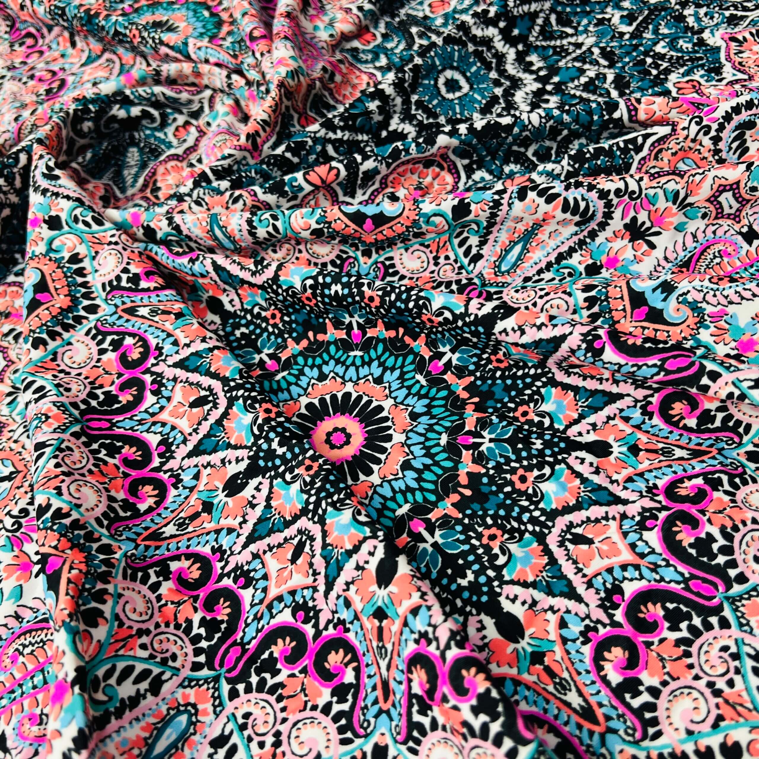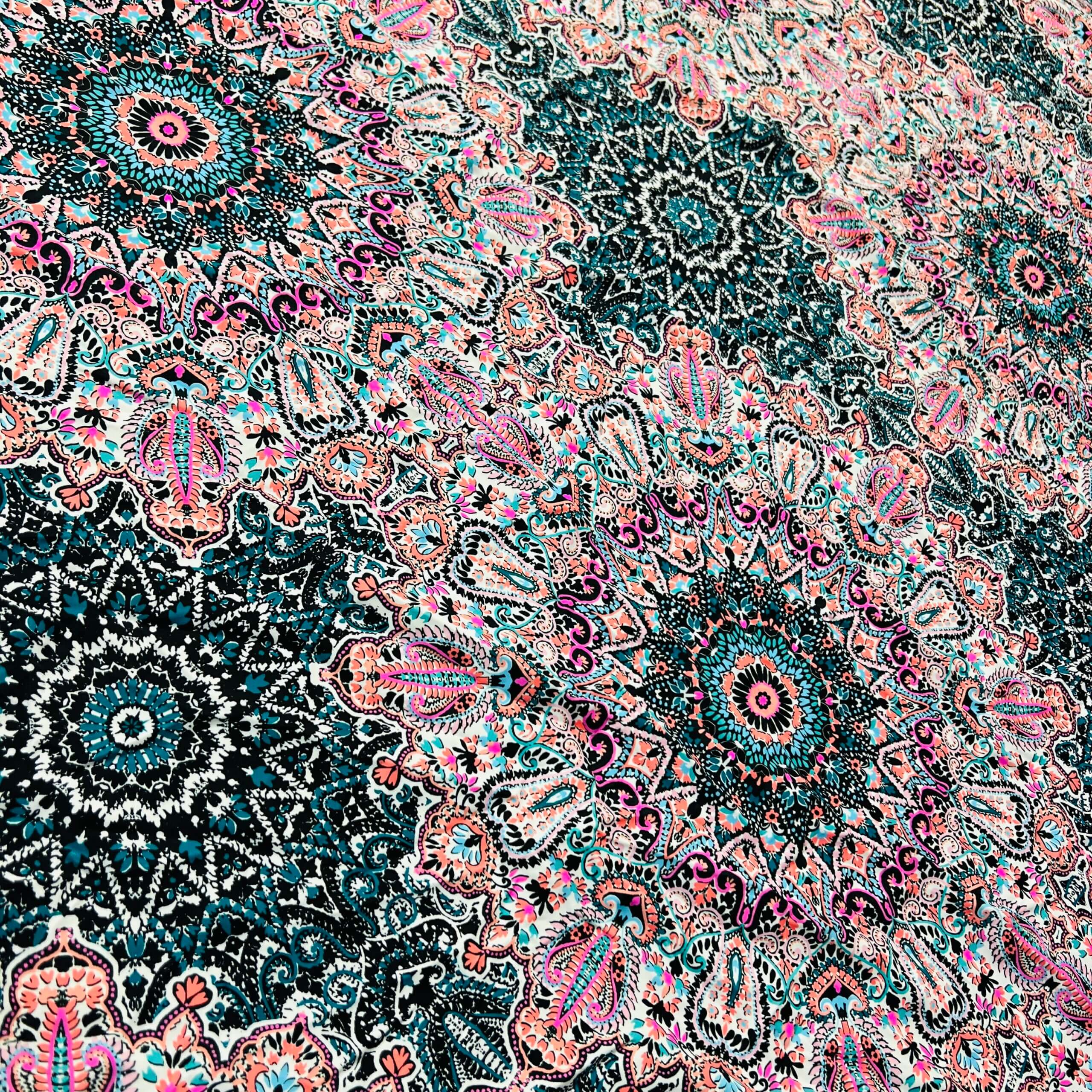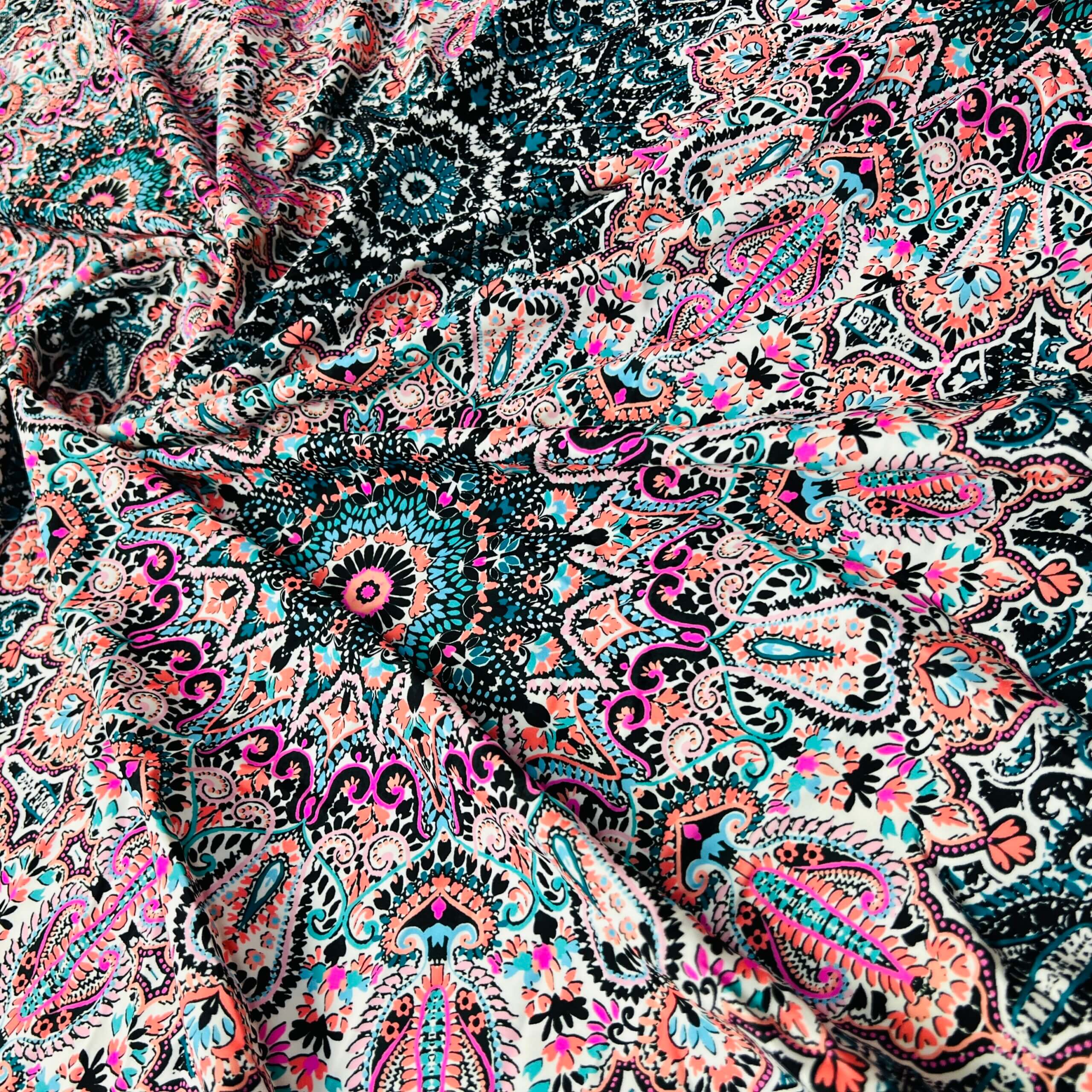 purple Vintage Mandala Print Nylon Spandex Fabric 4 Way Stretch for swimwear dancewear gymwear sportwear dress skirt