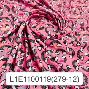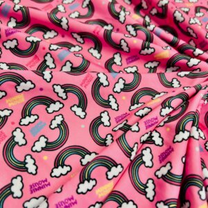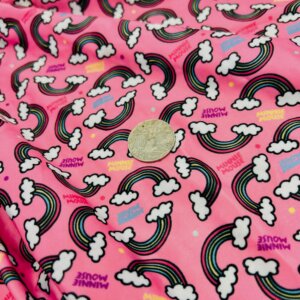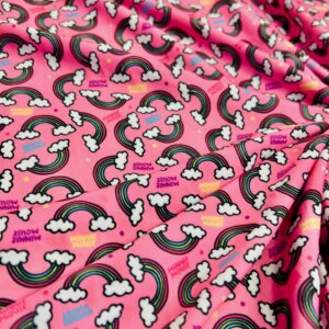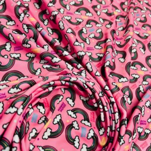 Rainbow and clouds pink background Print Nylon Lycra Spandex Fabric 4 Way Stretch By Yard for swimwear dancewear gymwear sportwear dress (279-12)